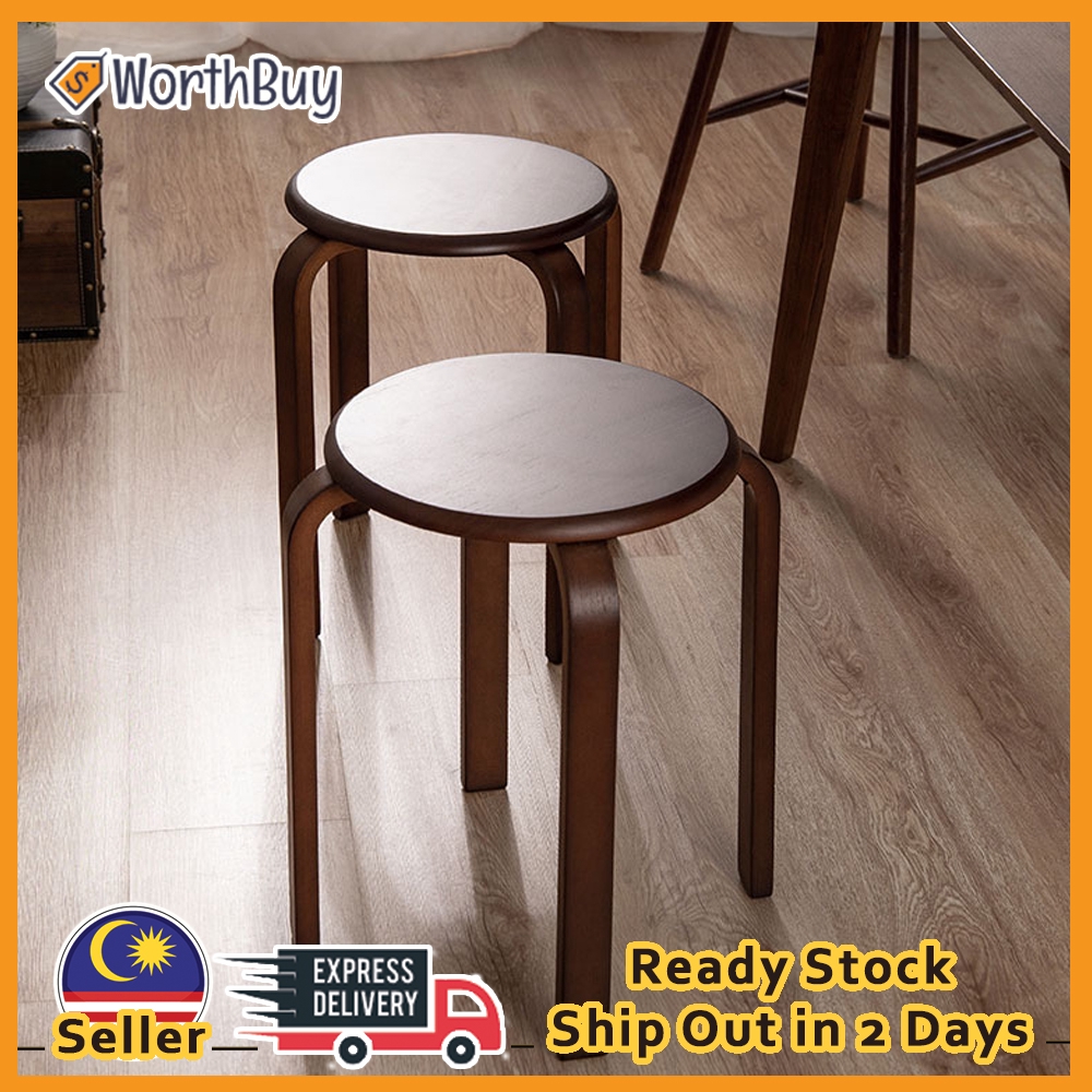Worthbuy Multipurpose Strong Solid RubberWood Chair Stackable Round Stool Side Table Seat
