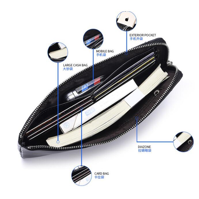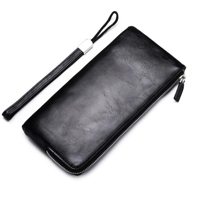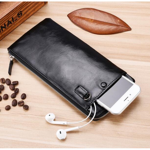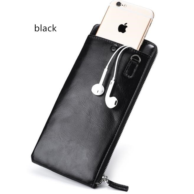 <Ready Stock>Man Wallet Pu Leather Male Card Holder Phone Pocket Purse Long Hasp Wallet Black