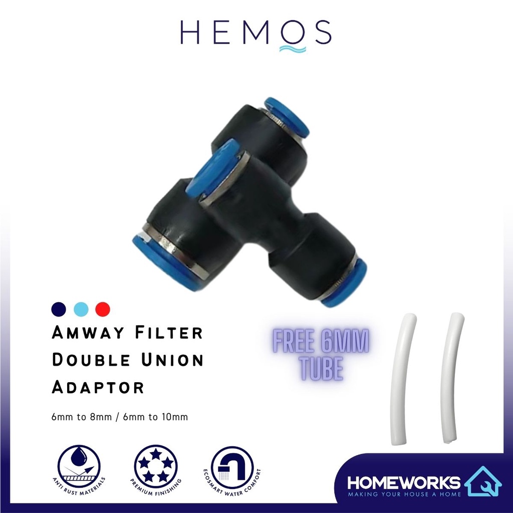 AMWAY FILTER DOUBLE UNION FITTING ADAPTOR WITH FREE 6MM TUBE