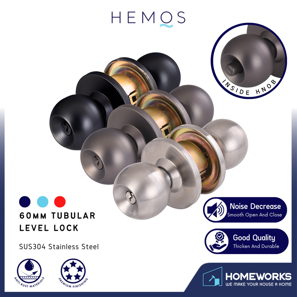 HEMOS 60MM CYLINDRICAL KNOBS DOOR LOCK SUS 304 HEAVY DUTY KUNCI TOMBOL PINTU RUMAH HM-5301,5302