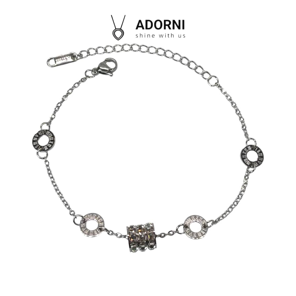 ADORNI Barrel Roll Ring & Roman Numeral Circle Pendant Bracelet Jewelry Gelang Tangan Wanita