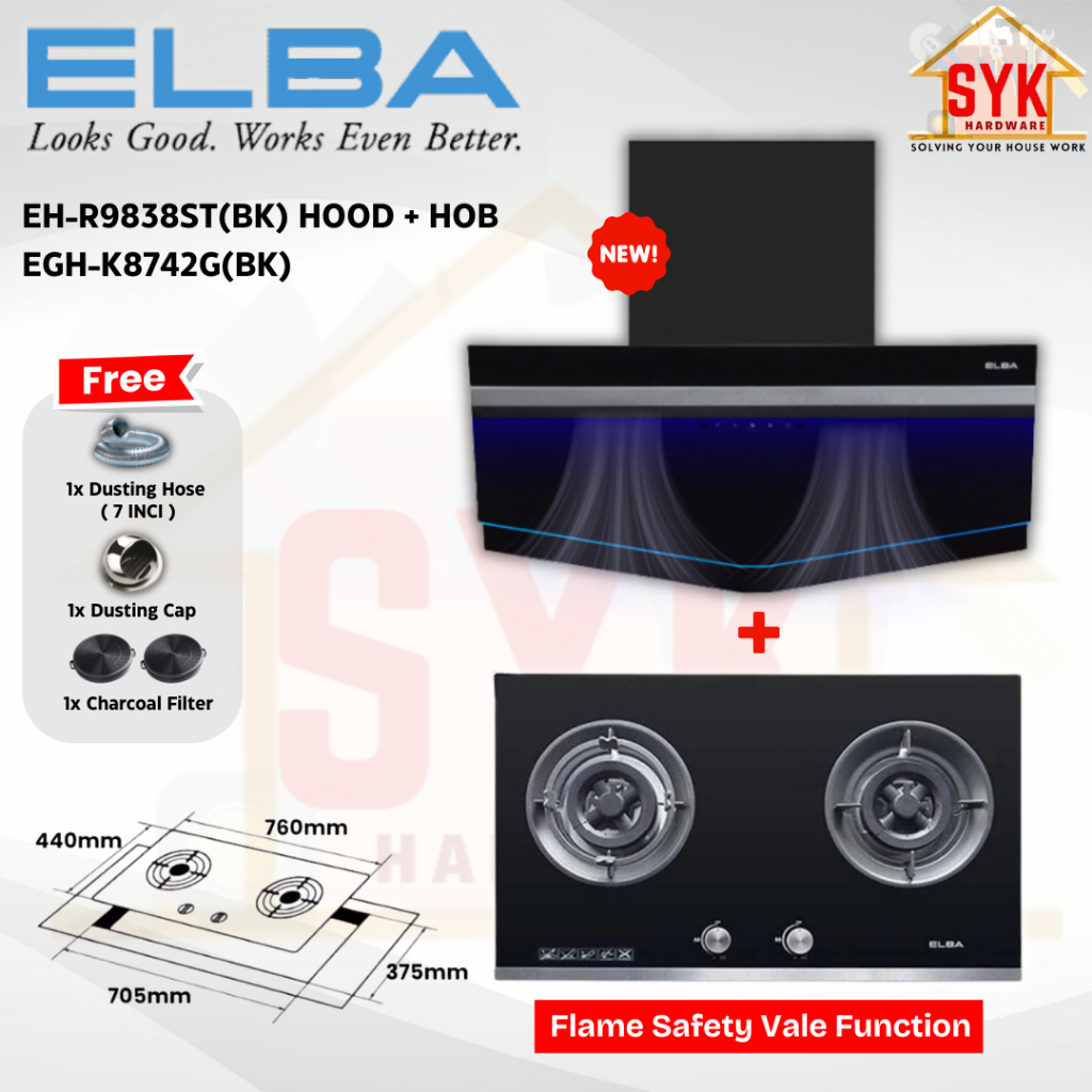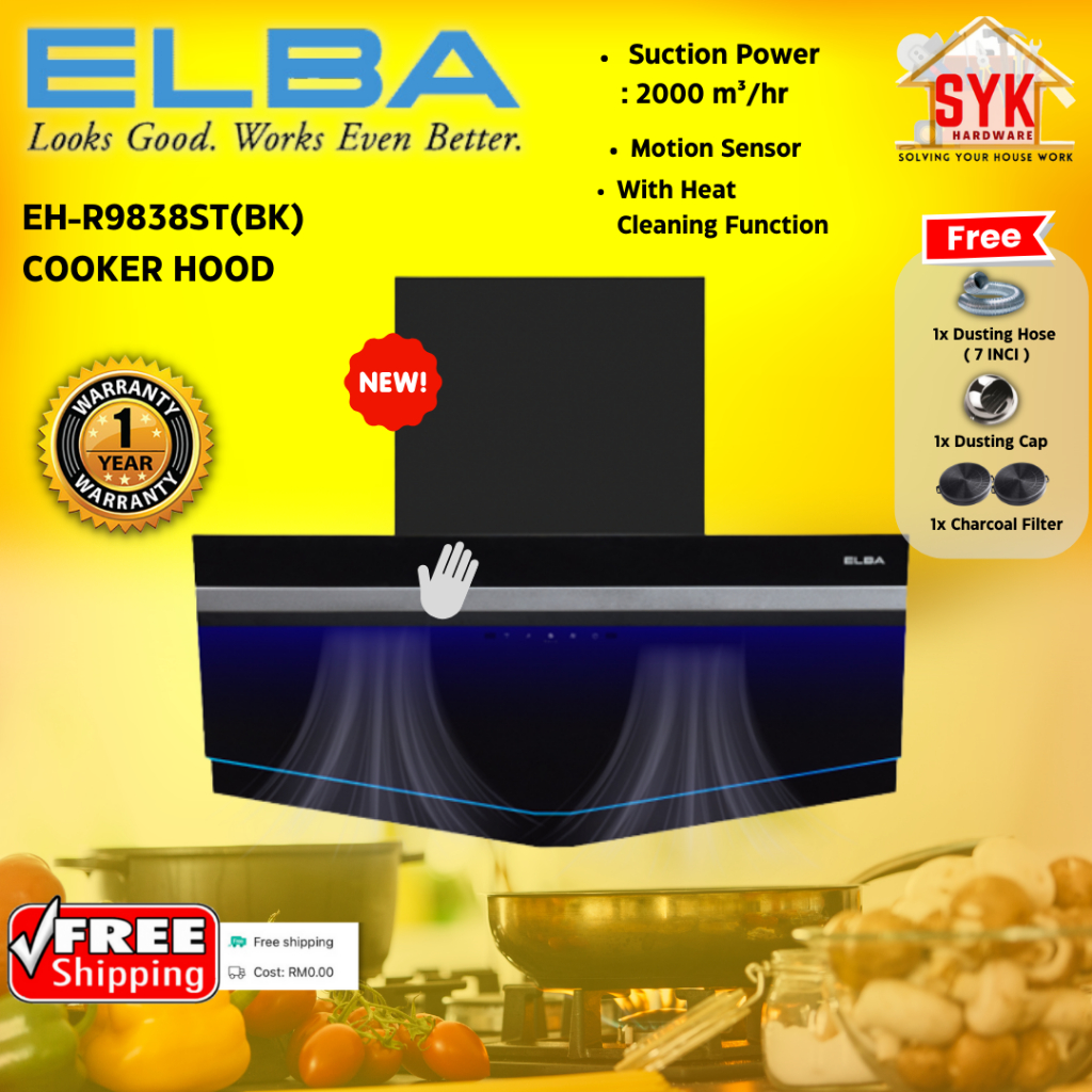 SYK Free Shipping ELBA EH-R9838ST(BK) Cooking Cooker Hood Kitchen Tools Penyedut Asap Dapur Masak Free Gift