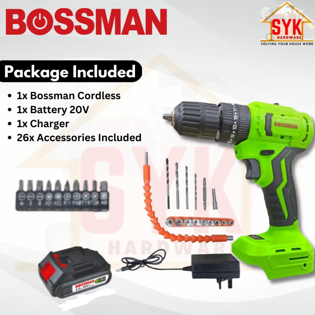 SYK(FREE SHIPPING)Bossman BHD-777 Cordless Brushless Hammer Drill Impact Battery Drill Power Tools Mesin Gerudi Kayu