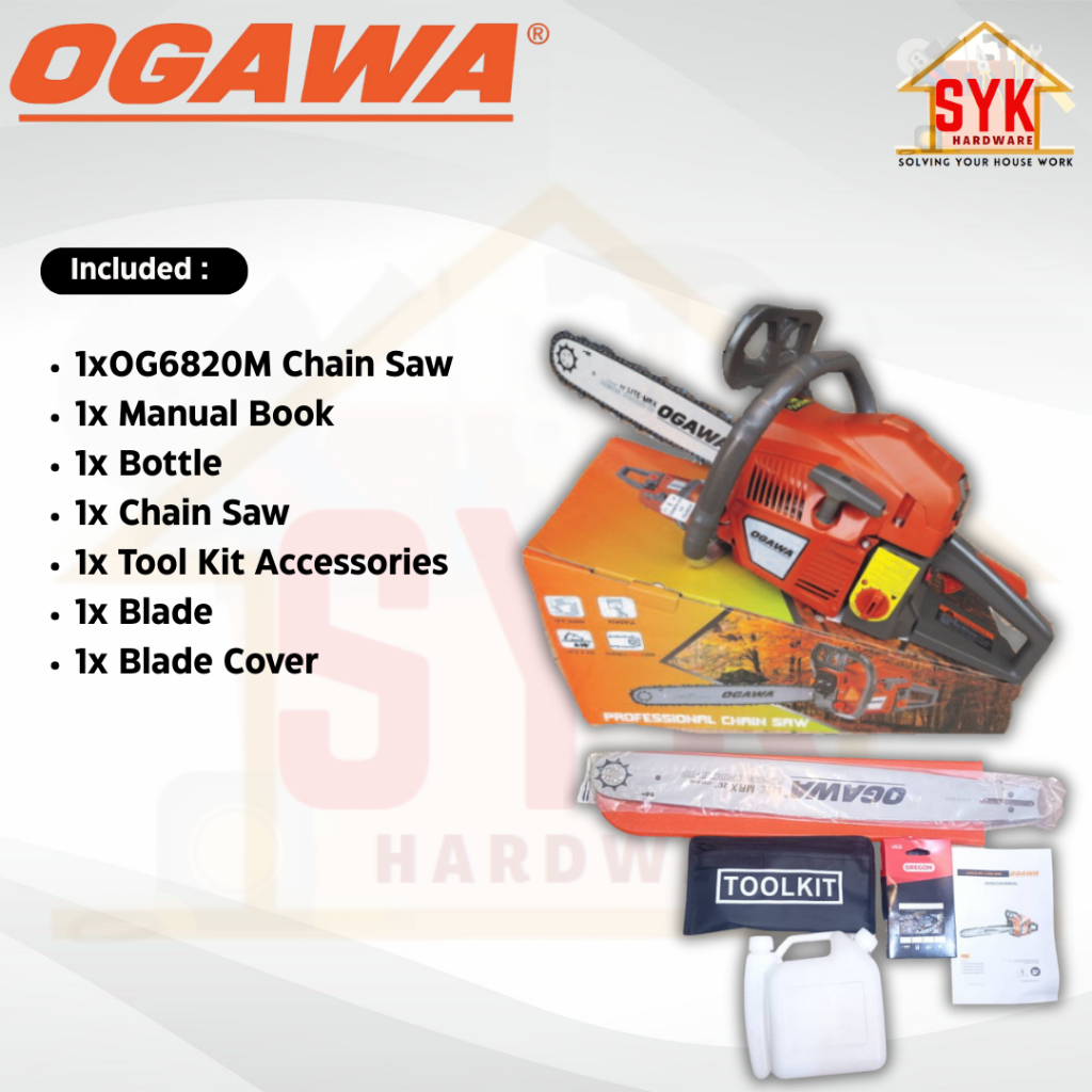 SYK OGAWA OG6820M 20 Inch Chainsaw Cutting Machine Outdoor Gardening Tools Mesin Gergaji Potong Pokok Kayu
