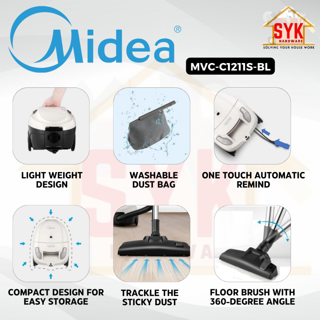 SYK MIDEA MVC-1211S 1200W MVC-C1433-BG 1400W Bagged Canister Vacuum Cleaner Home Appliances Mesin Penyedut Habuk