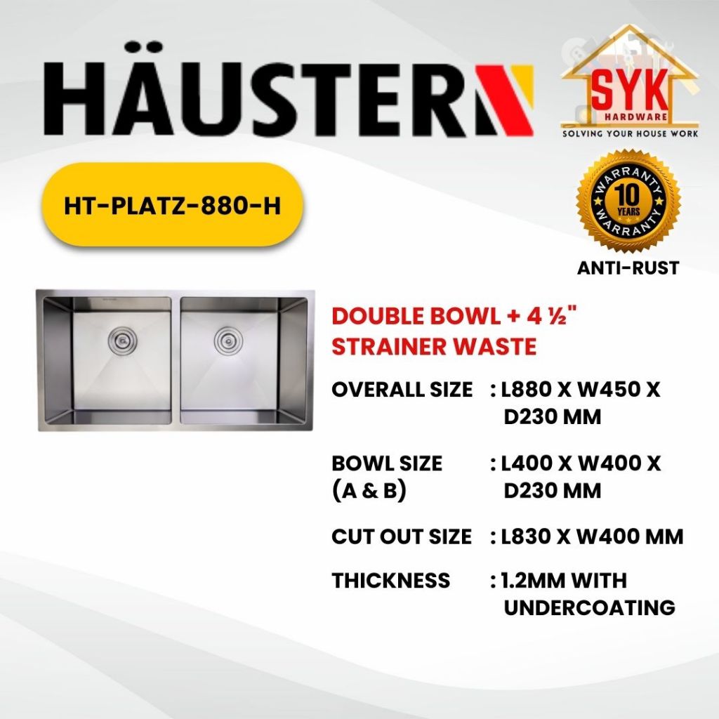 SYK (FREE SHIPPING) RUBINE HAUSTERN PLATZ SERIES Single Sink Double Sink Sinki Stainless Steel Kitchen Sink Sinki Dapur