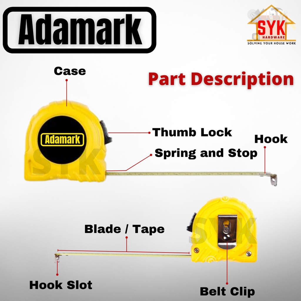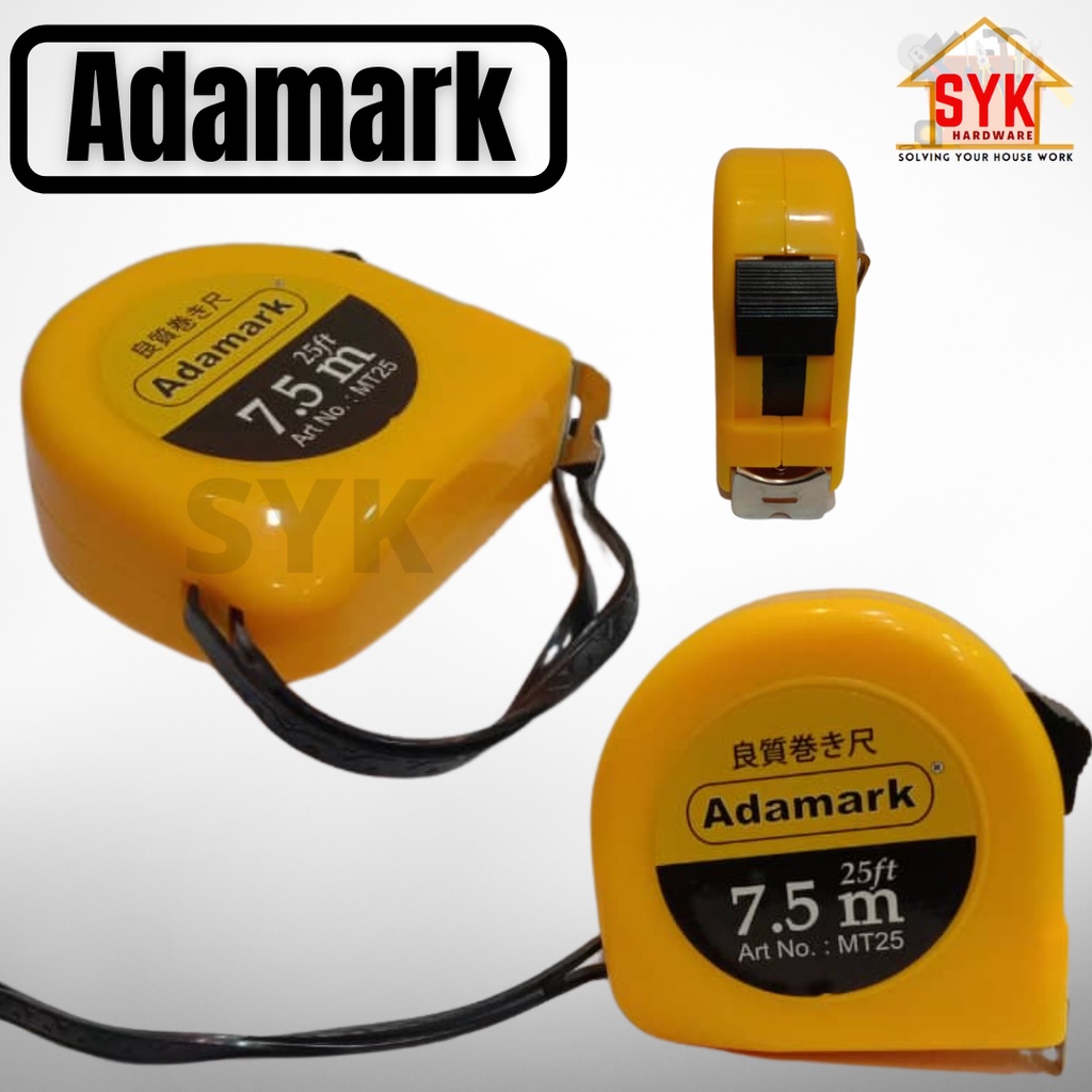 SYK Adamark 7.5M / 25Ft Measuring Tape Tali Tape Tali Tape Ukur 7.5Meter MT25