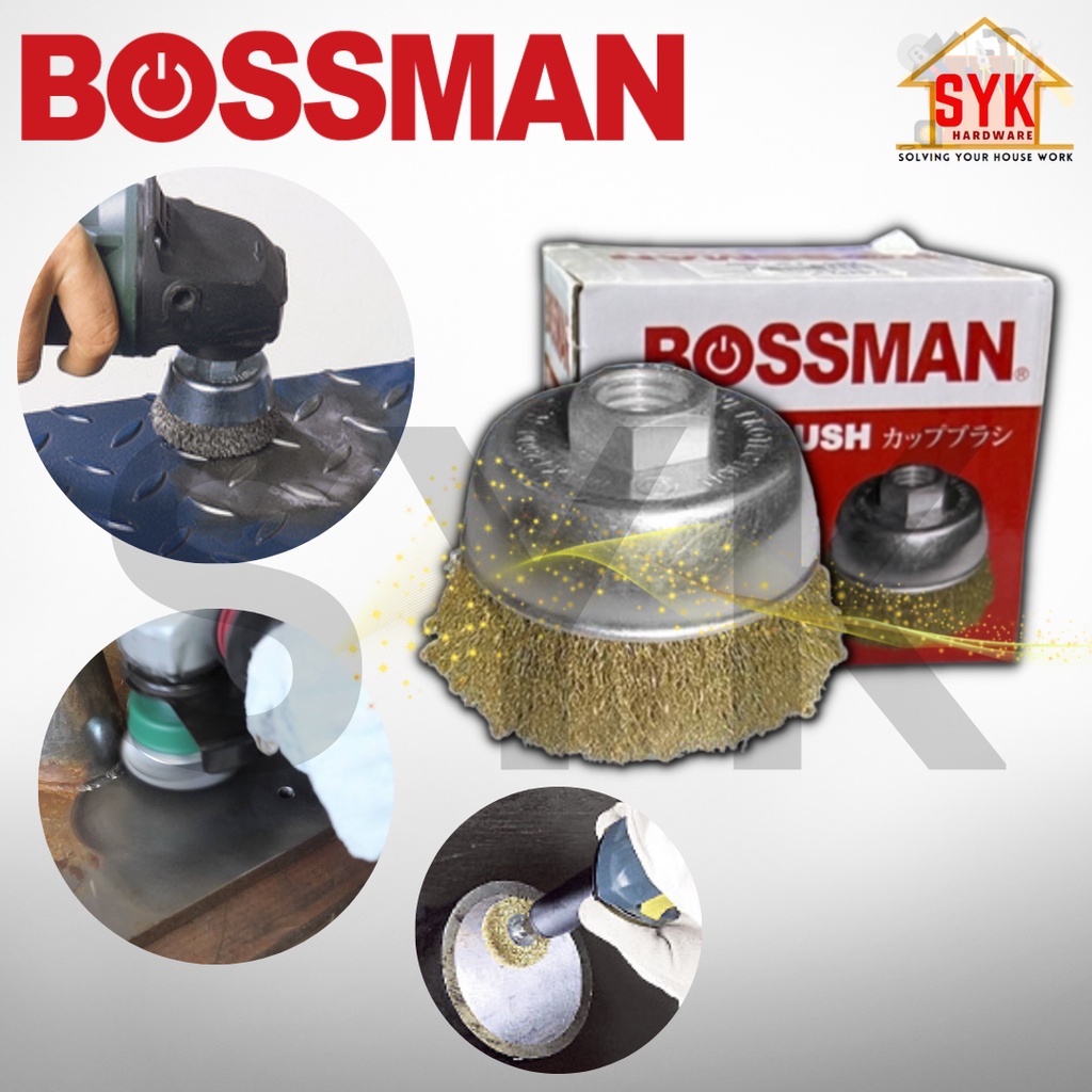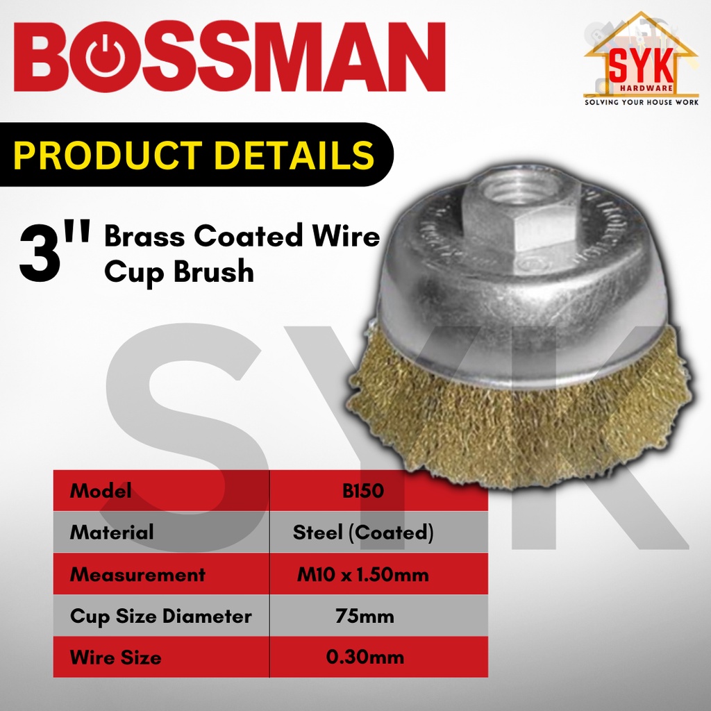 SYK Bossman B150 3Inch 75mm 1Pcs Brass Steel Coated Wire Grinding Cup Brush Grinder Berus Cawan Pengisar Wayar Loyang
