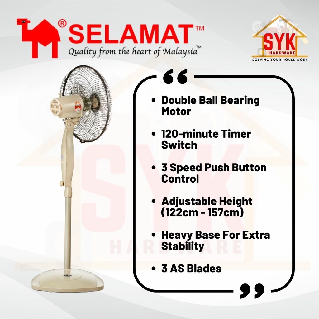 SYK Selamat/Bossman MQ-P216ST/P16ST/BSF161-DG Stand Fan 16 Inch Electric Fan Stand Home Appliances Kipas Angin Berdiri