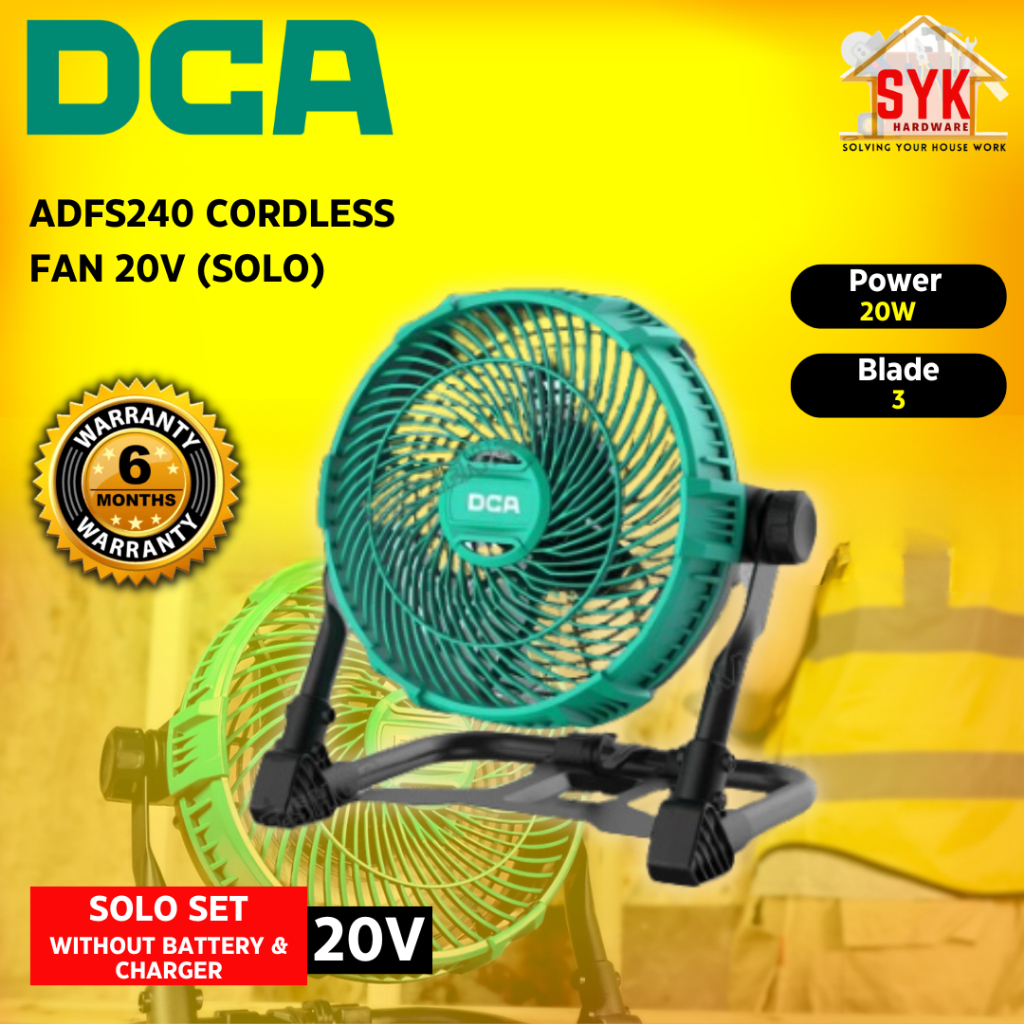 SYK DCA ADFS240 Cordless Fan Solo Battery Air Fan Home Appliances Cooling Fan Kipas Bateri Kipas Angin Kuat 20V