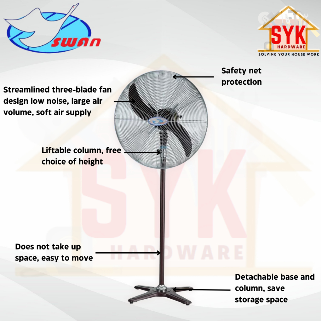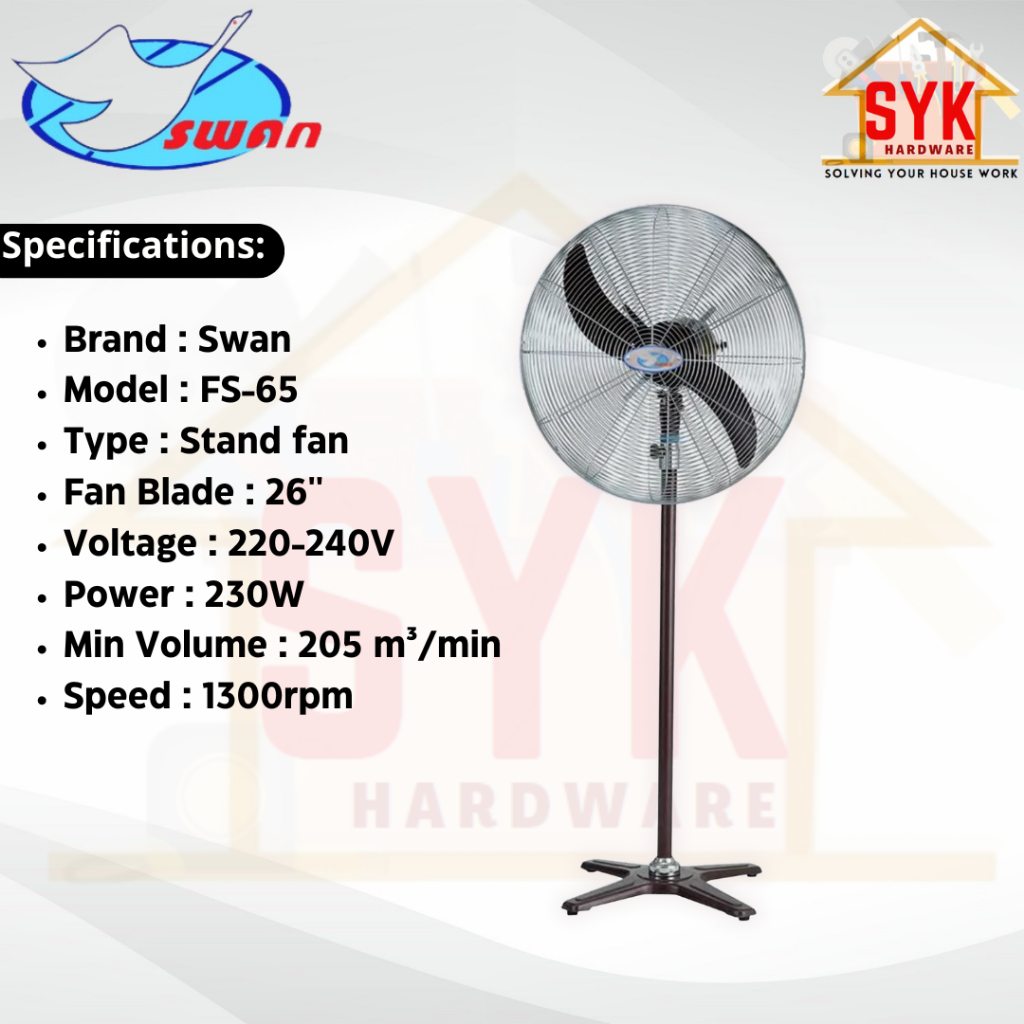 SYK Swan FS-65 26 Inch Industrial Stand Fan Electric 2 Blade Stand Fan Kipas Elektrik Berdiri Angin Kuat