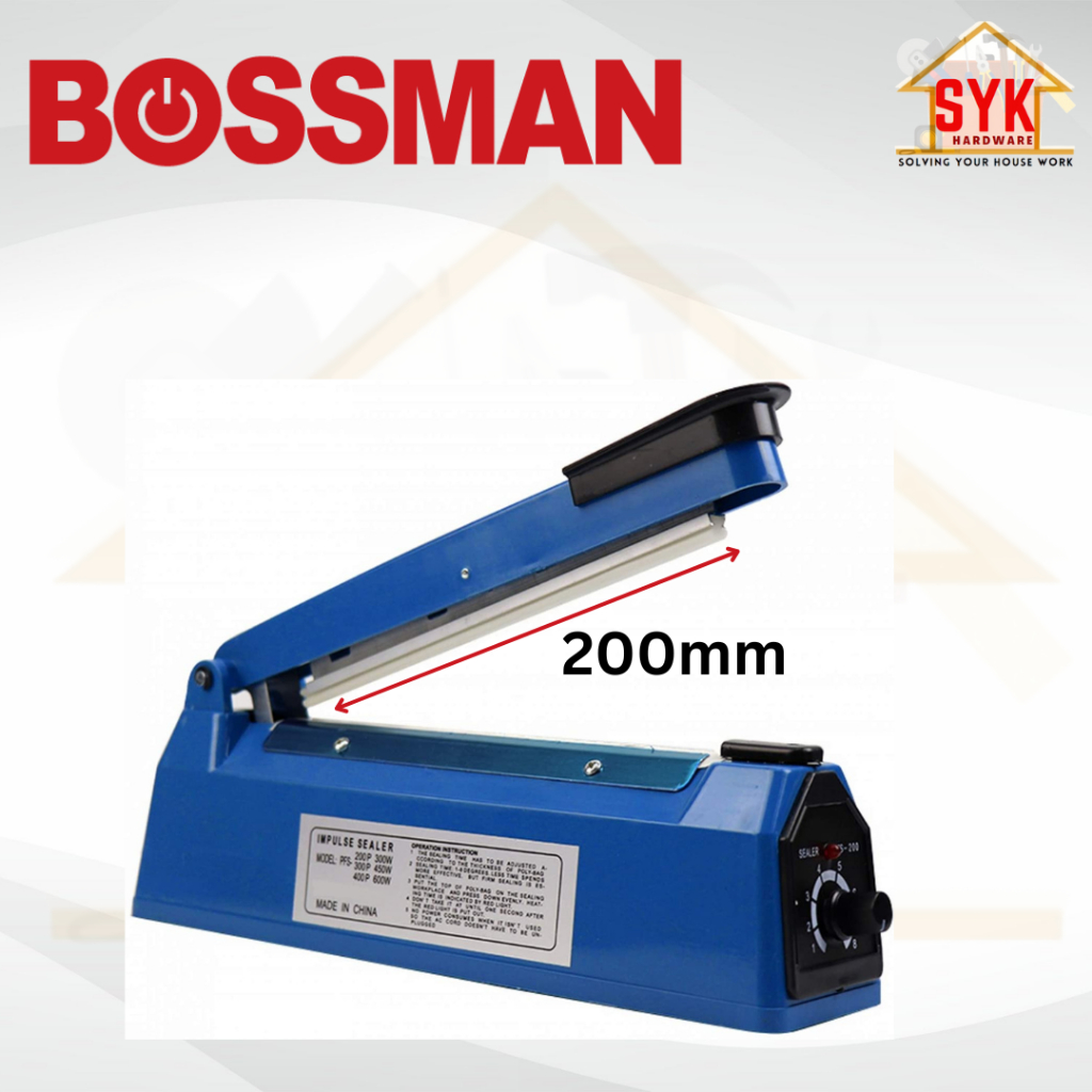 SYK BOSSMAN BIS-200 200mm Impulse Sealer Machine Sealer Sealing Film Heat PE PP Plastic Poly Bag Mesin Bungkus Kedap