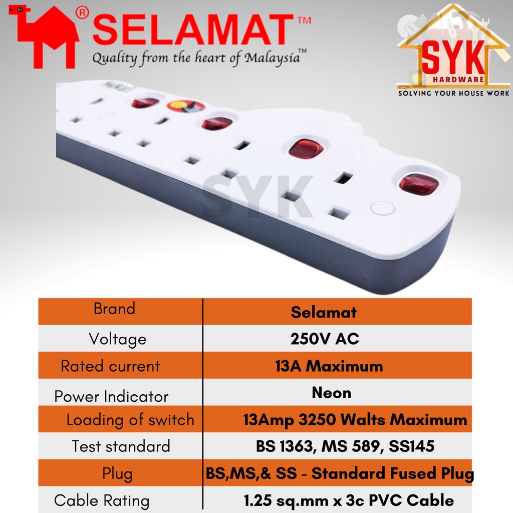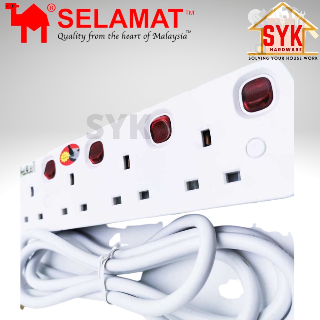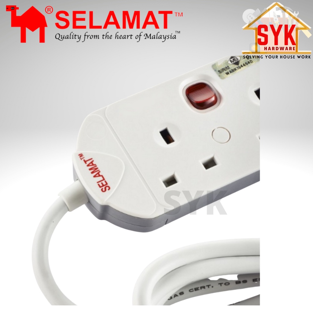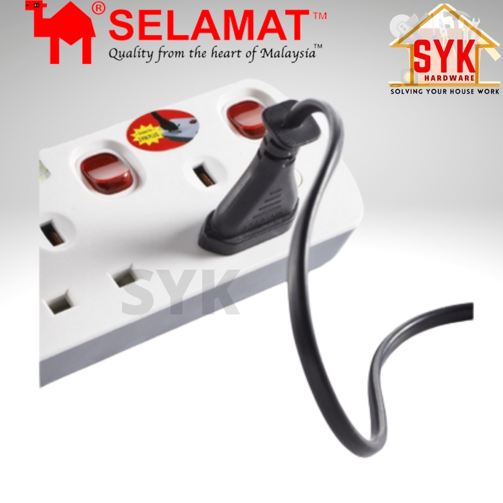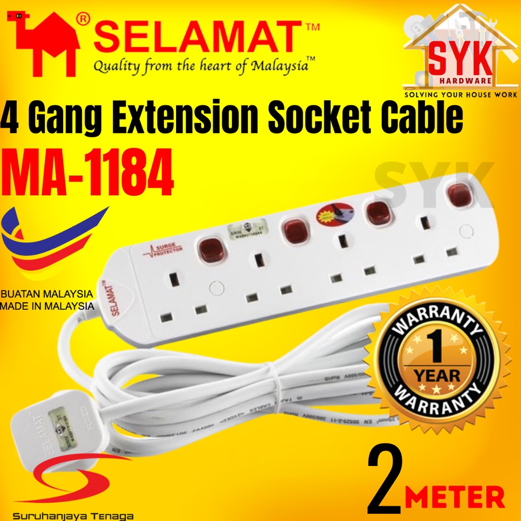 SYK SELAMAT MA-1184 2 Meter 4 Gang Extension Portable Trailing Socket Extension Plug Heavy Duty Extension Socket