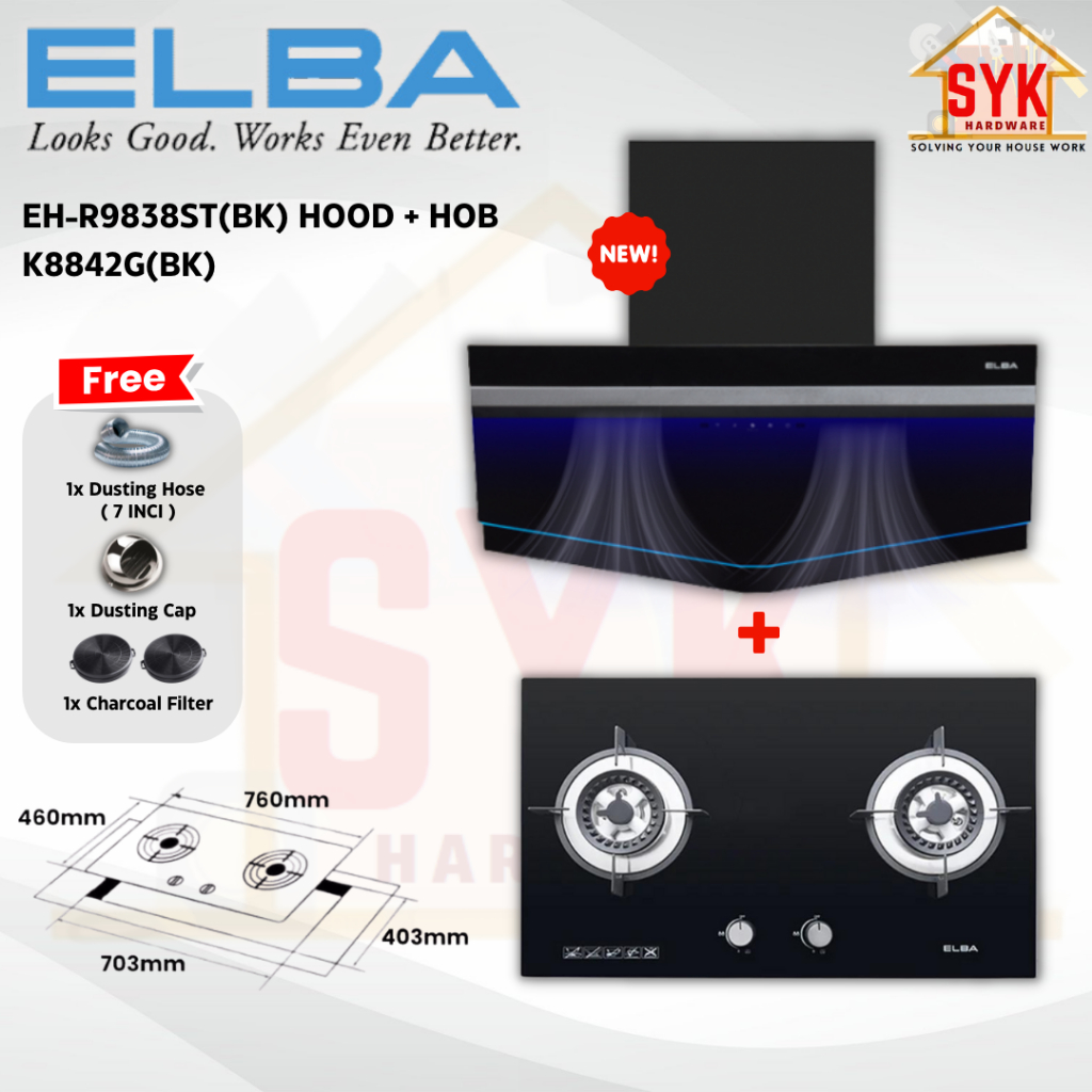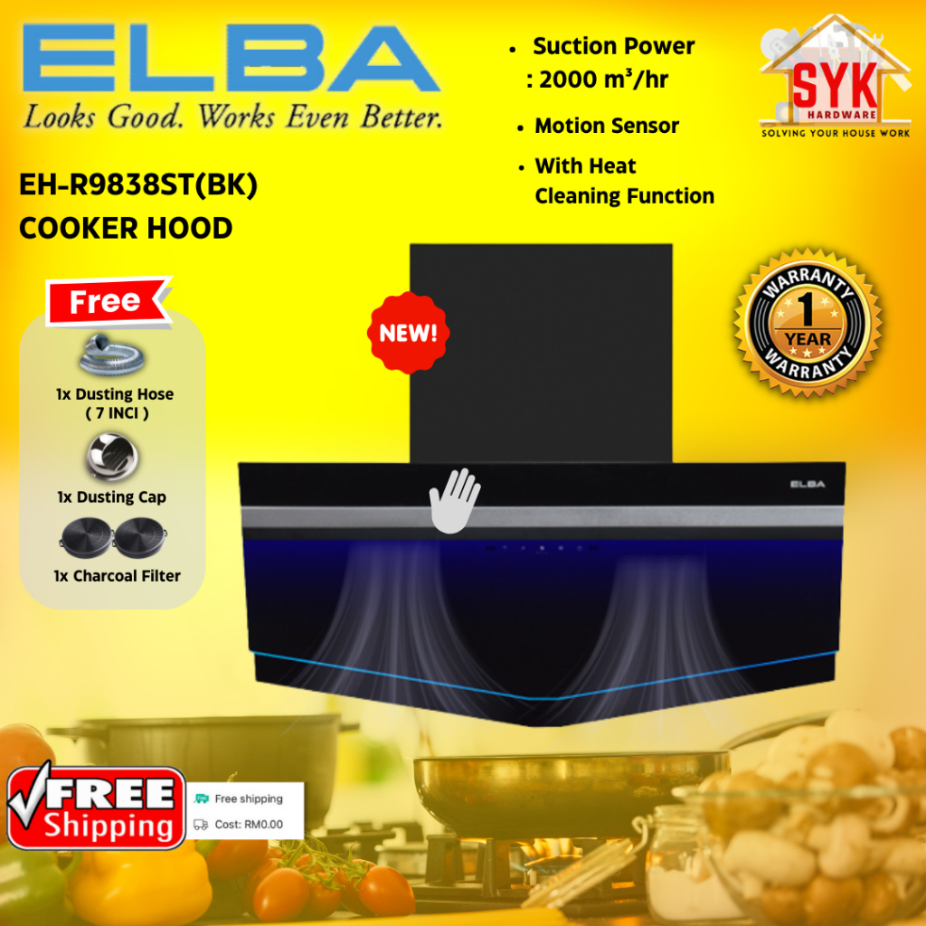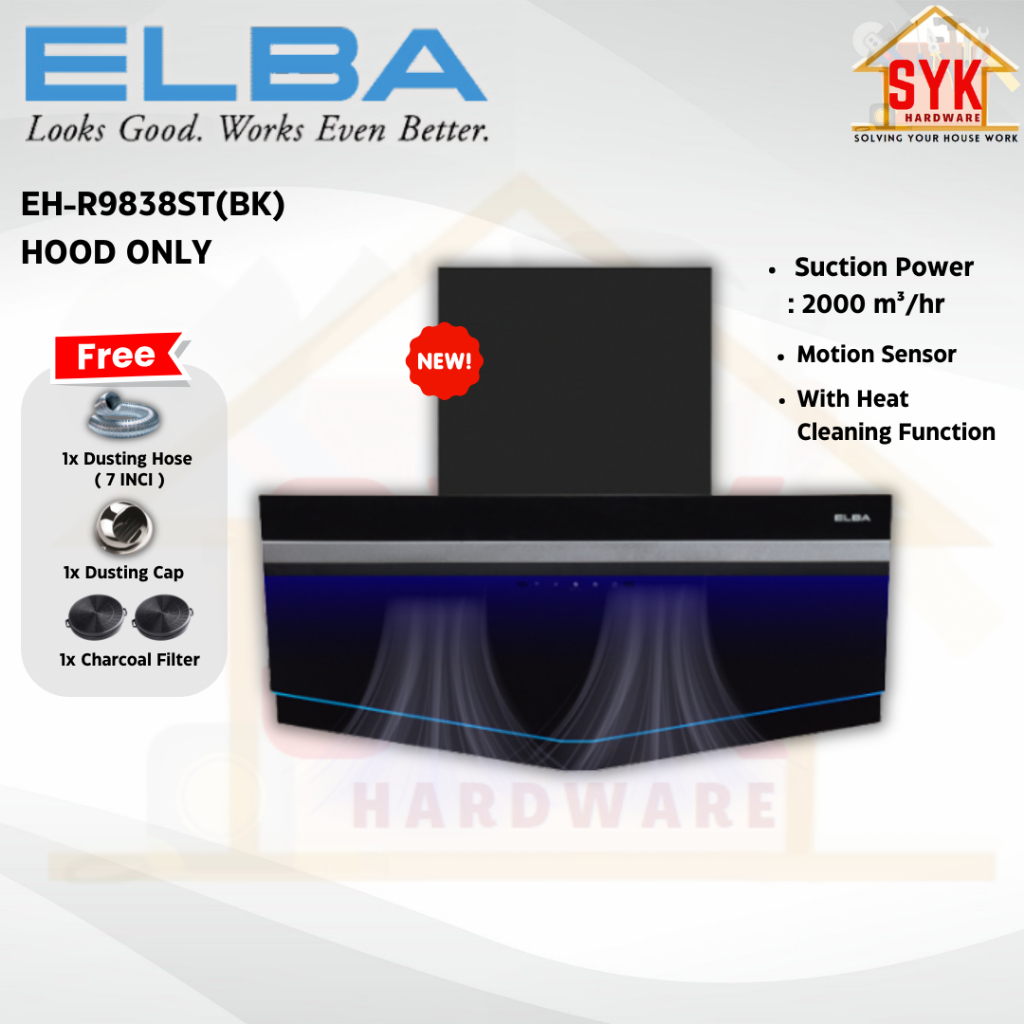 SYK Free Shipping ELBA EH-R9838ST(BK) Cooking Cooker Hood Kitchen Penyedut Asap Dapur Masak Free Gift