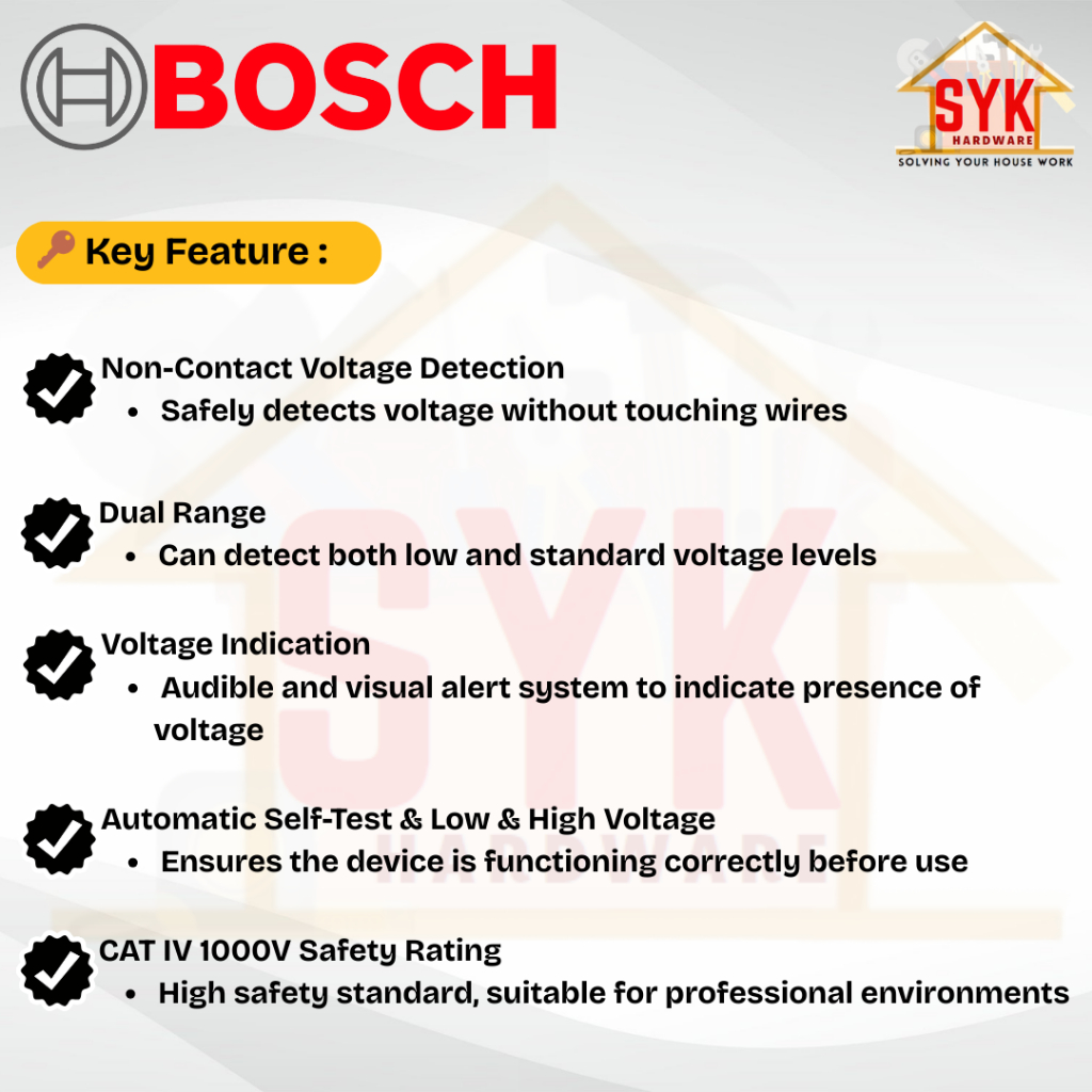 SYK Bosch GVD1000-17 GVD 1000-17 Non-Contact Voltage Battery Tester Hand Tool Test Pen Penguji Tegangan 06010770K0