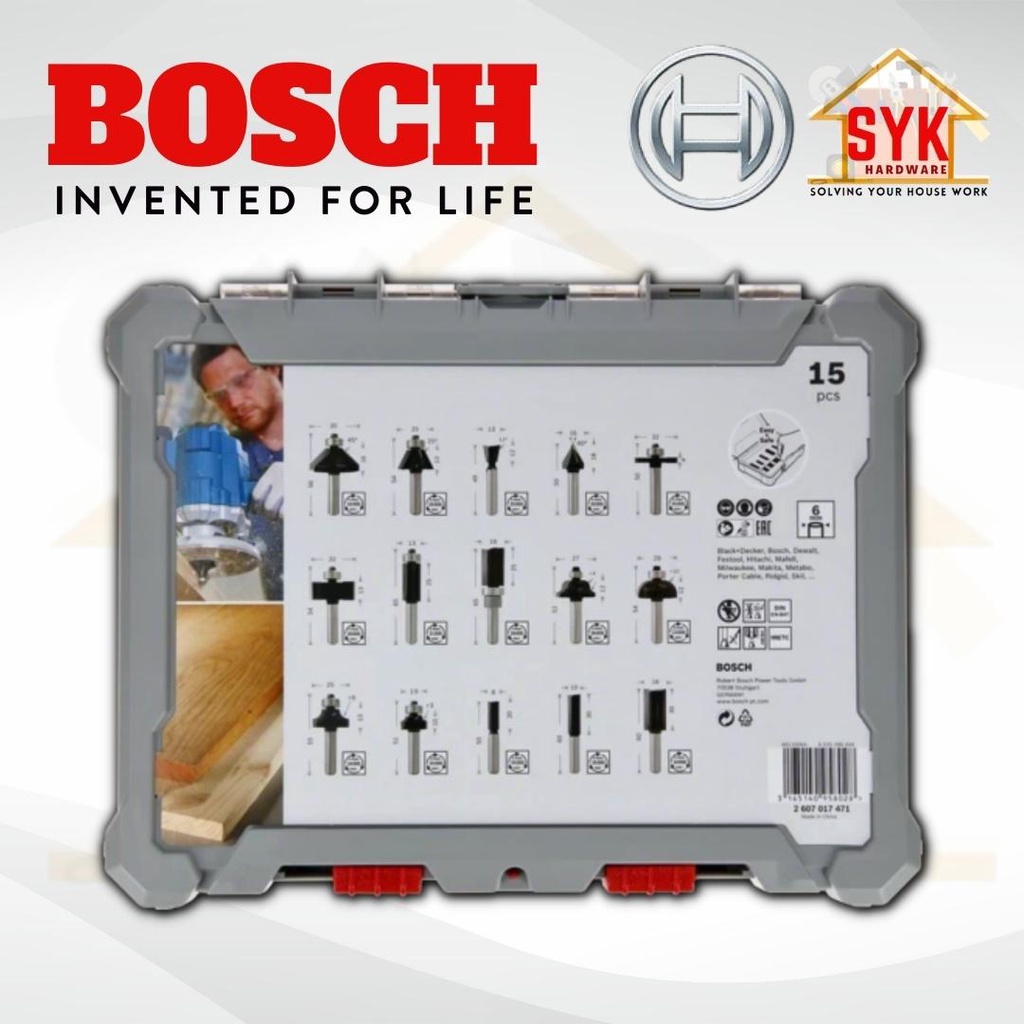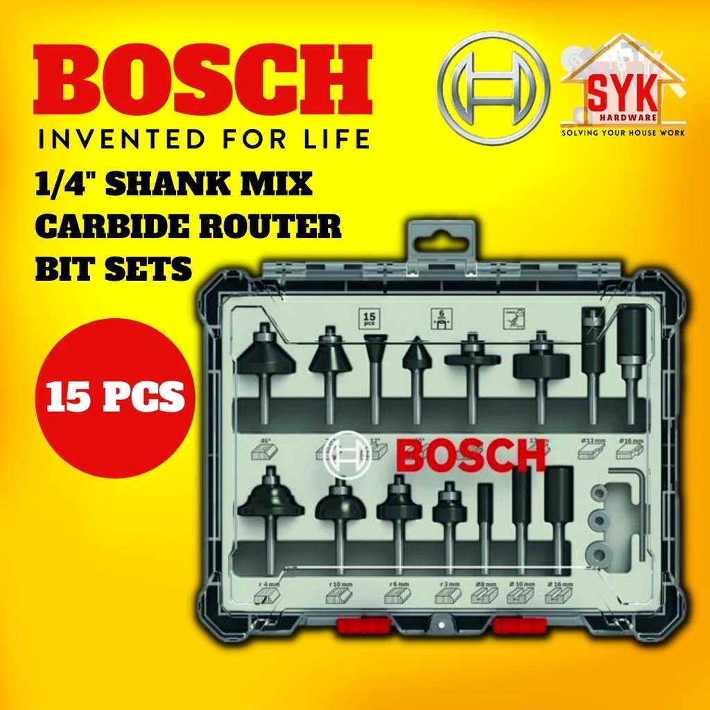 SYK Bosch 15pcs 1/4" Shank Mixed Carbide Router Bit Sets Shank Trimmer Wood Trimmer Bit Sets - 2607017473
