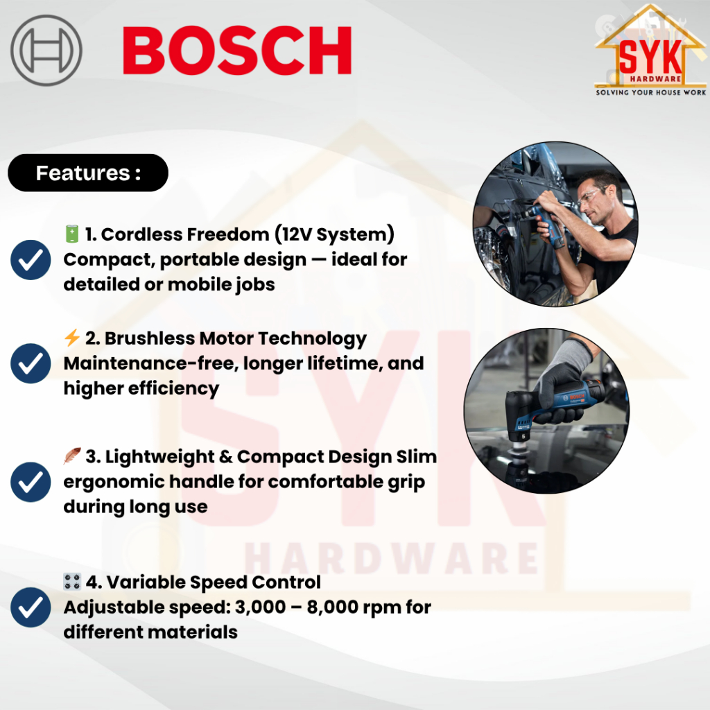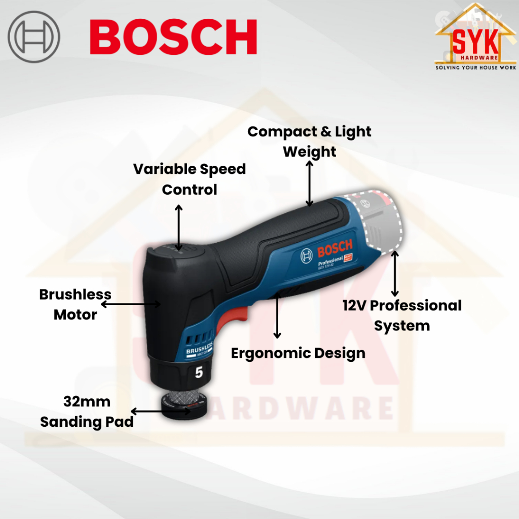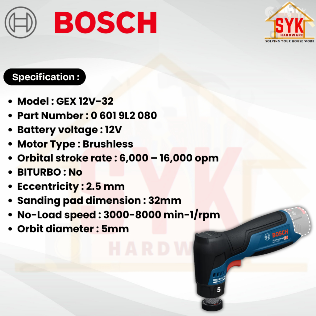 SYK Bosch GEX 12V-32 Cordless Random Orbit Sander Solo Machine Battery Mesin Sander Bateri 0 601 9L2 080