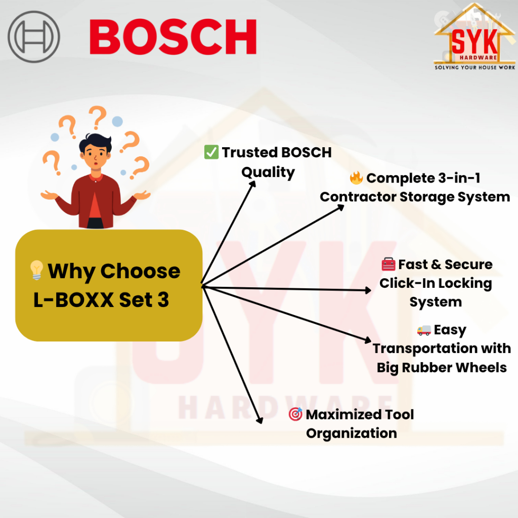 SYK Bosch L-BOXX Contractor Set 3 Storage Power Tools Container Kotak Simpanan Mesin Storage Box Tool Box 1600A037DY