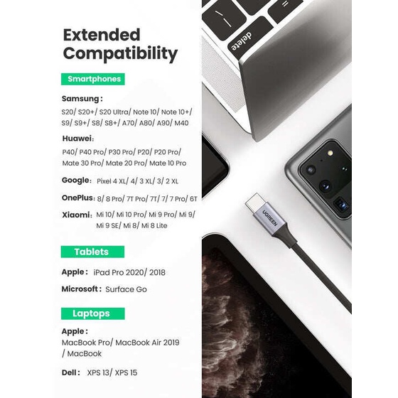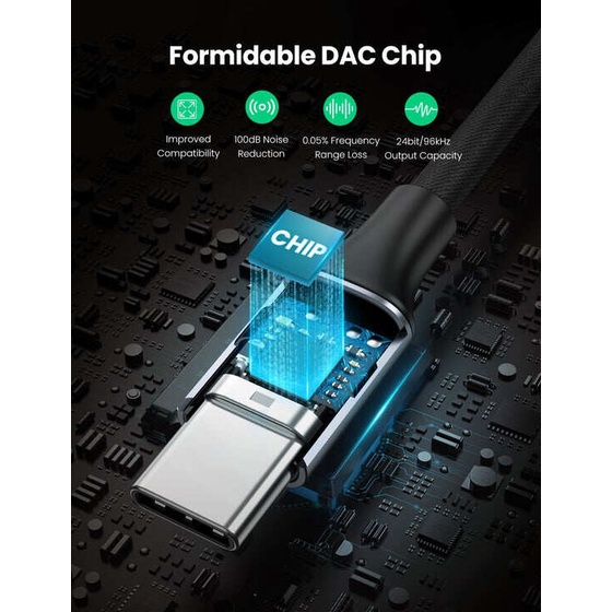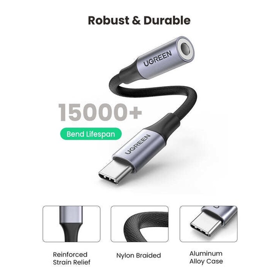 Hotdeal Ugreen USB-C to 3.5mm M/F Cable Aluminium Shell With Braided 10cm (Space Gray) UG-AV161-80154