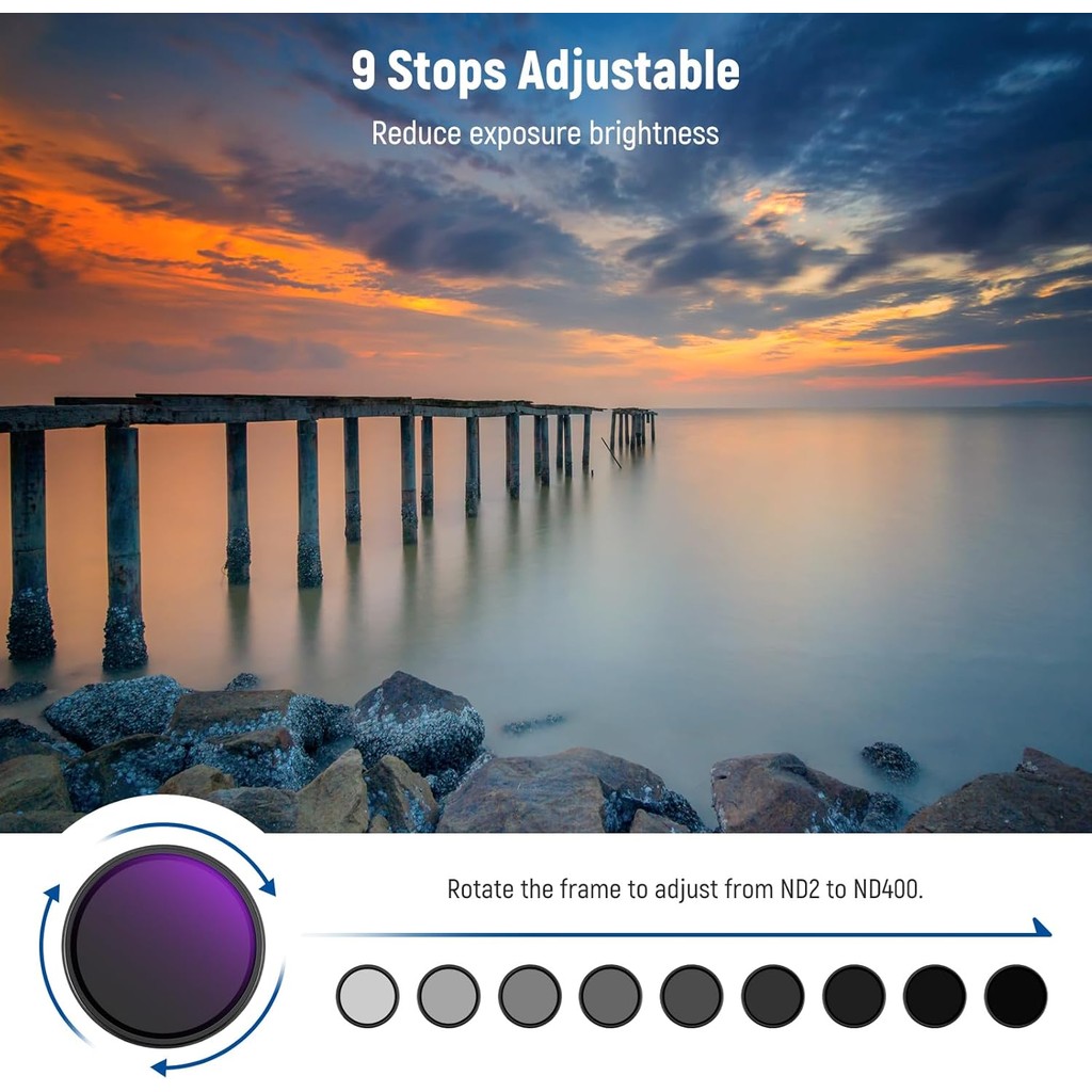 NEEWER MRC Variable ND Filter With Lens Cap & Cleaning Cloth (67mm) ND2-400