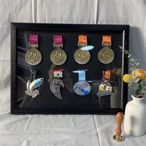 Marathon Medal Display Stand Wall Hanging keep Balance Car Gold Medal Frame Swing Table Solid Wood Photo Frame Creative Medal Frame