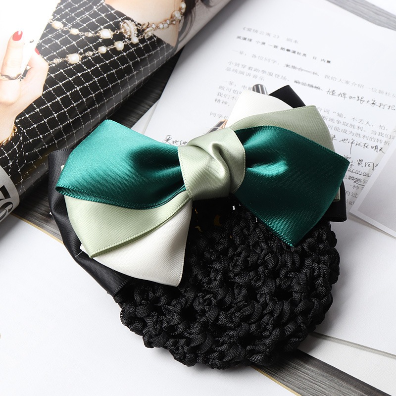 🇲🇾 Hairnet Bun Cover Ribbon Clips Gradient Black Blue Green Work School / Jepit Rambut Cepol Sanggul Pita Rambut Kilp