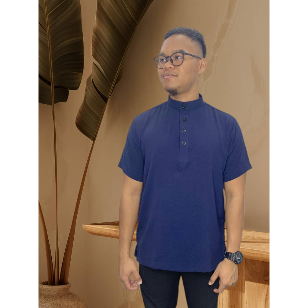 Kurta Cekak 2026 Premium Lengan Pendek Lelaki Button Collar Side Pocket Ready Stock Malaysia Muslimin
