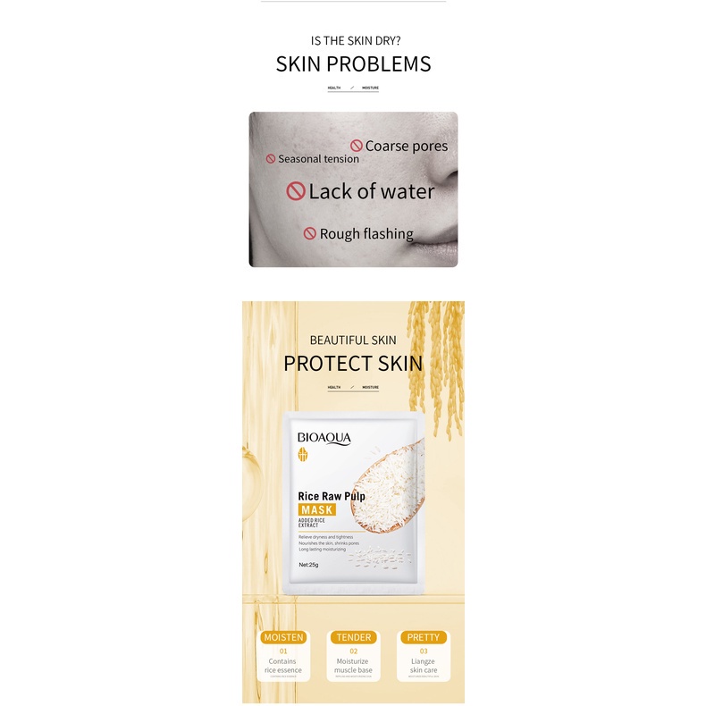 BIOAQUA Rice Raw Pulp Facial Mask Moisturizing Hydrating Skin Rejuvenation Facial Mask