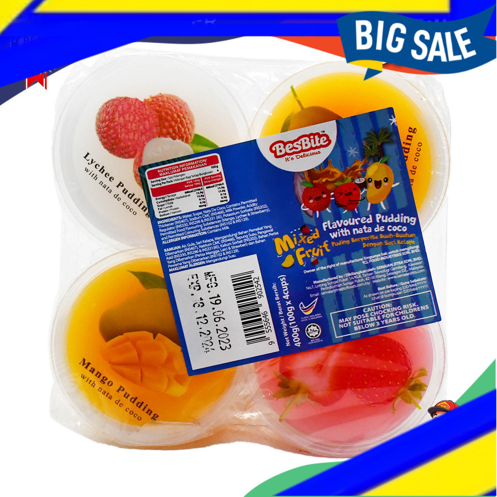 (4pcs) HALAL, Jelly Nata Decoco, Puding Nata De Coco Assorted Pudding with Nata De Coco 100g