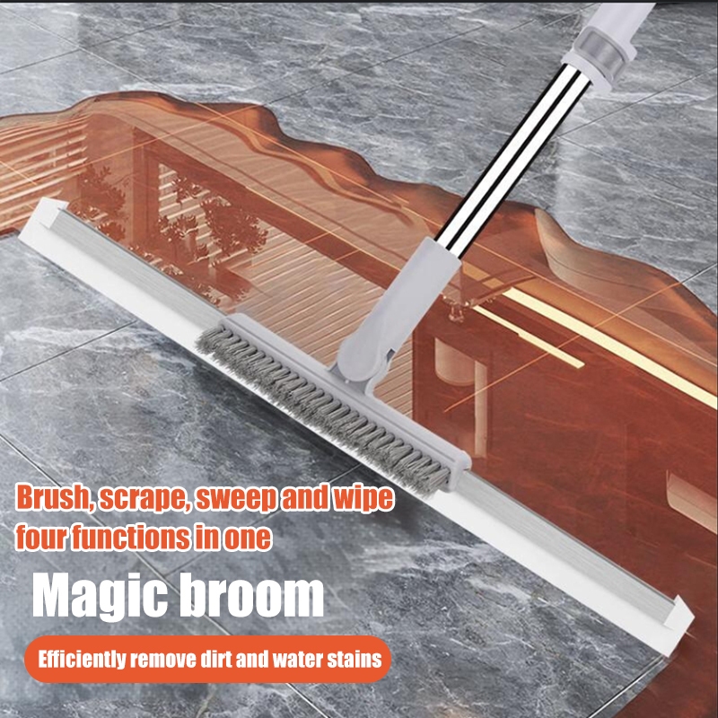 Highly efficient 4in1 Soft Silicone Magic Broom Scraper and Floor Brush Traceless Clean Floor Wiper 50cm 魔術掃把 Penyapu ajaib Berus lantai 180° Degree Rotatable Bathroom Squeegee