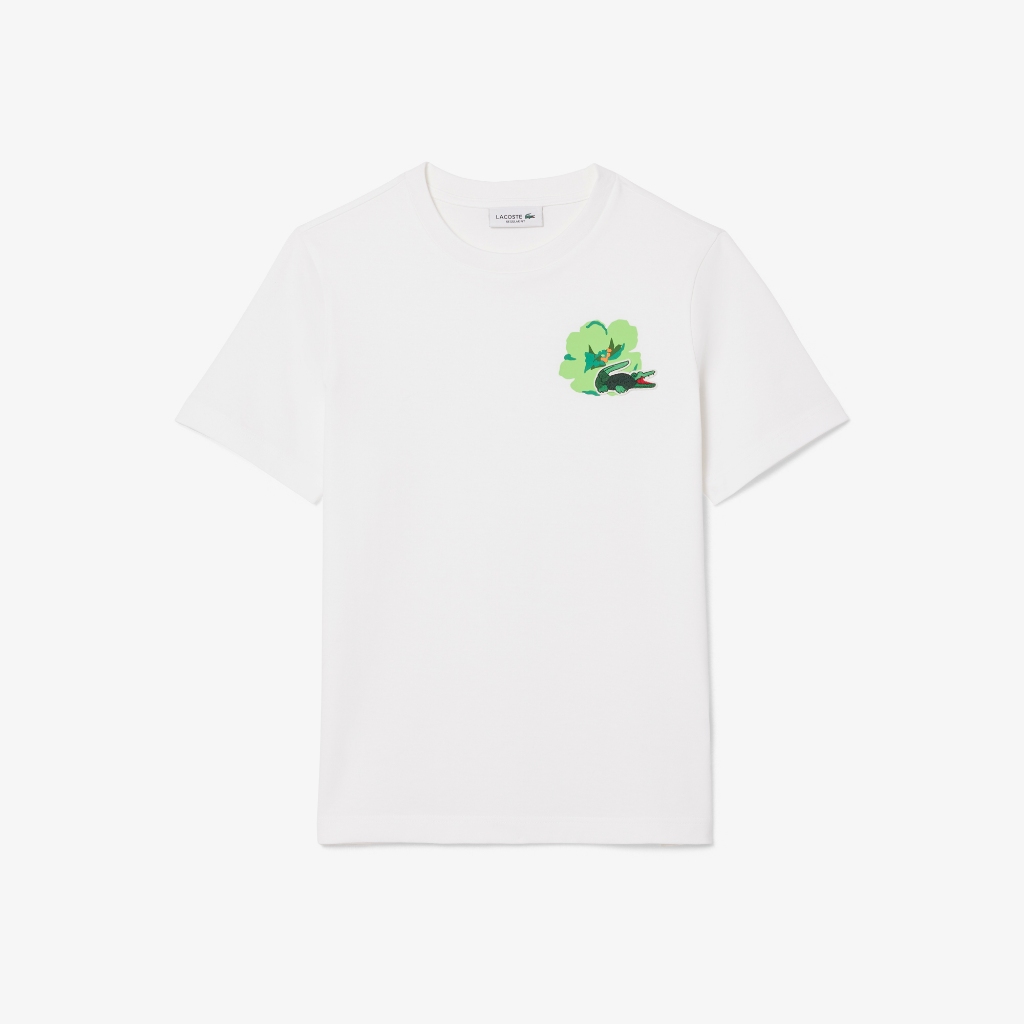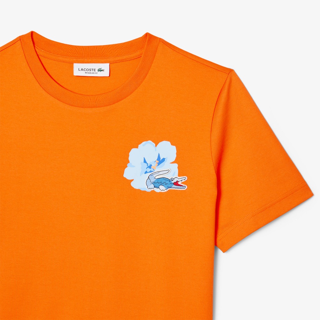 Lacoste Women's Heavy Cotton Flower T-Shirt - Lifestyle ( White / Orange ) - TF6933