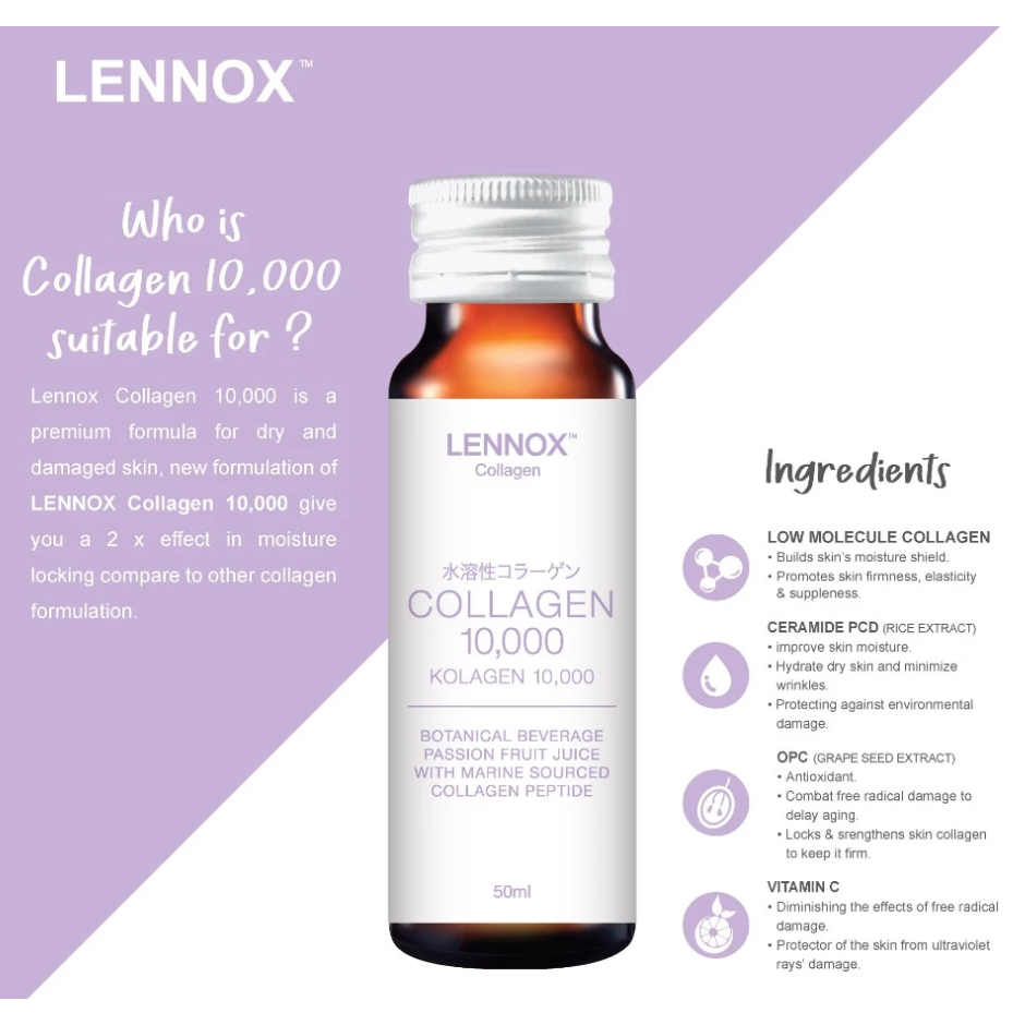 (Purple) LENNOX Collagen 10000 (50ml x 20 Bottles) COLLAGEN PEPTIDE 10,000MG EXP12/2027