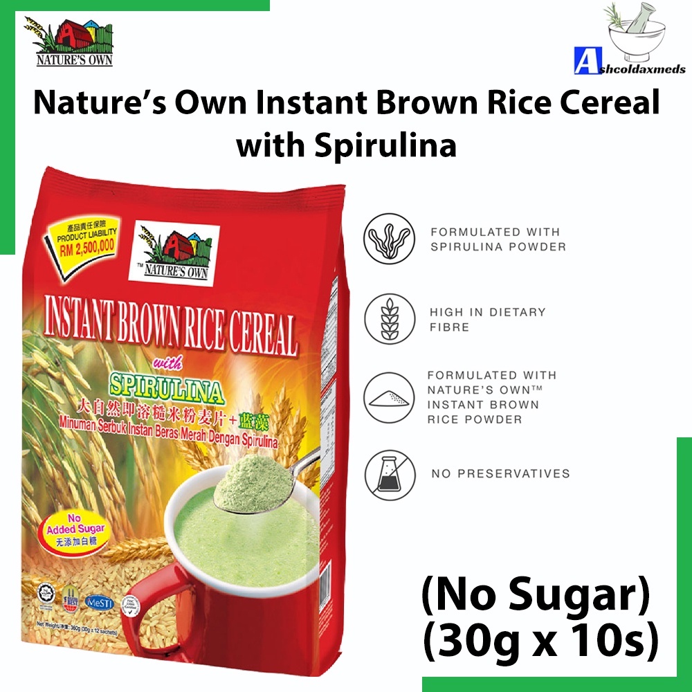 (RED) Nature’s Own® Instant Brown Rice Cereal with Spirulina (No Sugar) 300g (30g x 10sachets) EXP03/2027