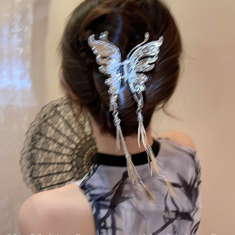 新中式蝴蝶流苏抓夹女高级感古风金属鲨鱼夹后脑勺发夹盘发头饰New Chinese Butterfly Tassel Clip Women's High-end Antique Style20260104