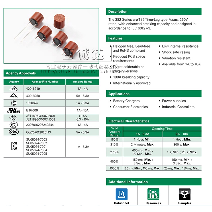 10PCS T1A T2A T3.15A T4A T5A T6.3A 250V 382 Cylindrical Round Fuse LCD Fuse