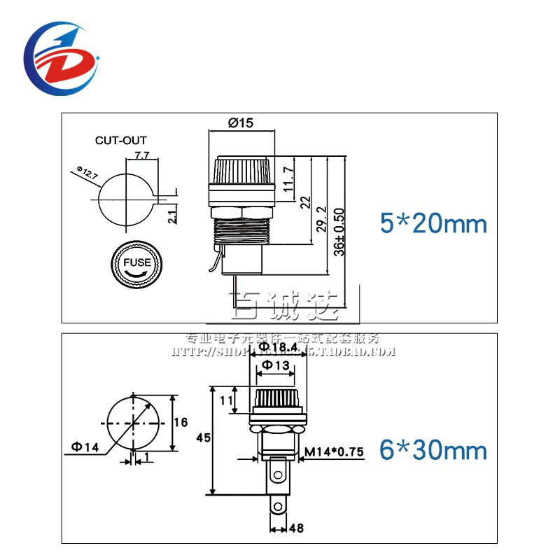 10PCS 5*20 6*30 fuse holder 10A 250V 5*20mm 6*30MM