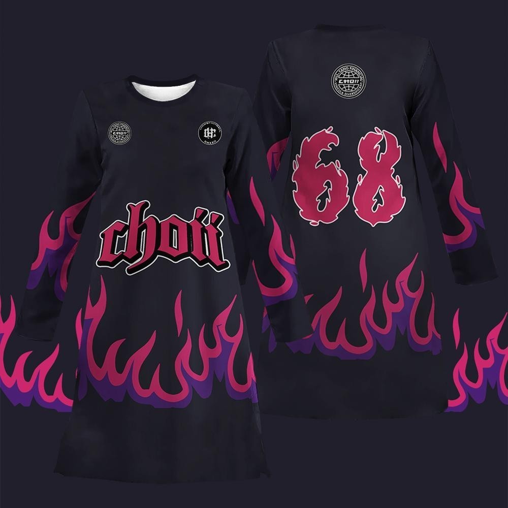 (Free Customization)Baju Raya Choii Flame Jersey Custom Number Muslim Sportswear Long Sleeve Muslim T-Shirt