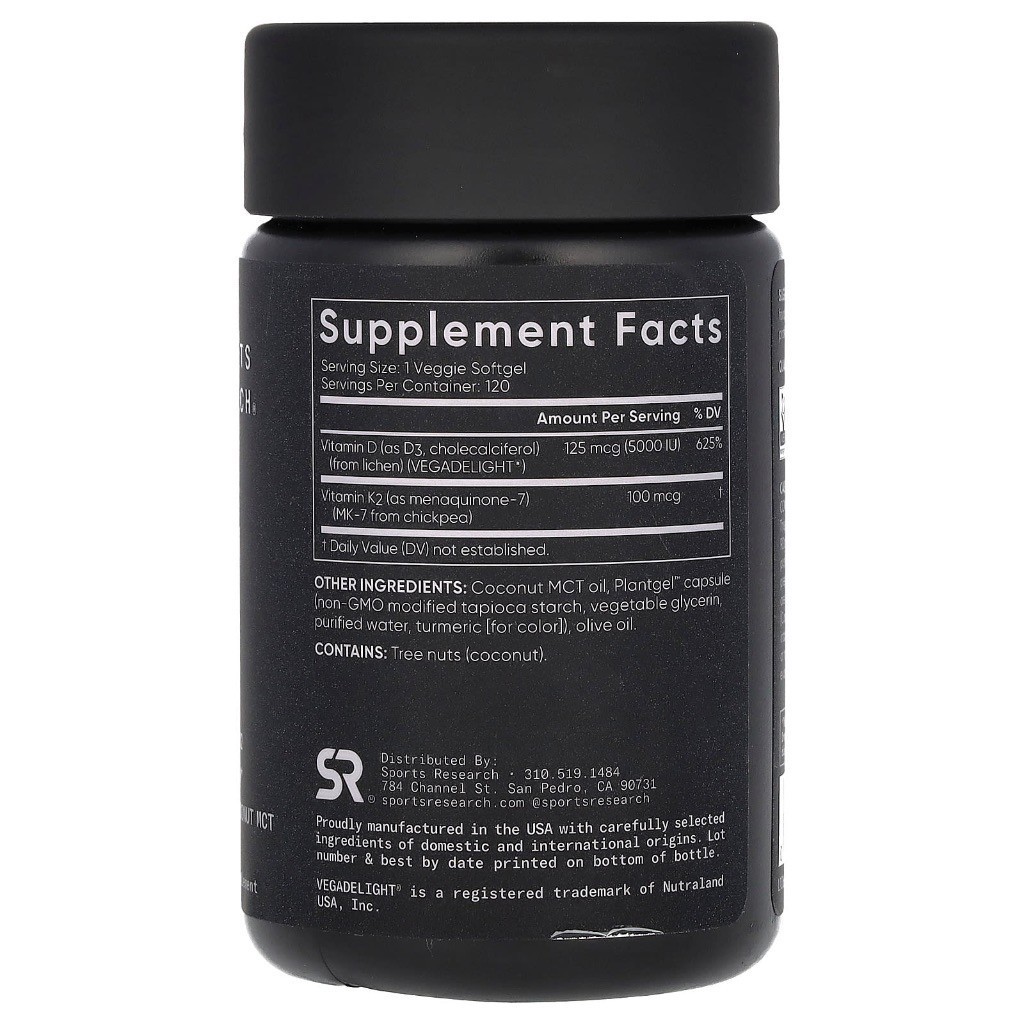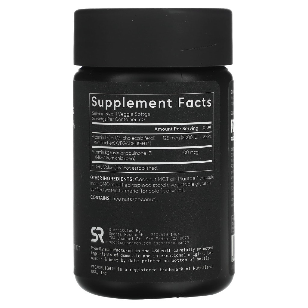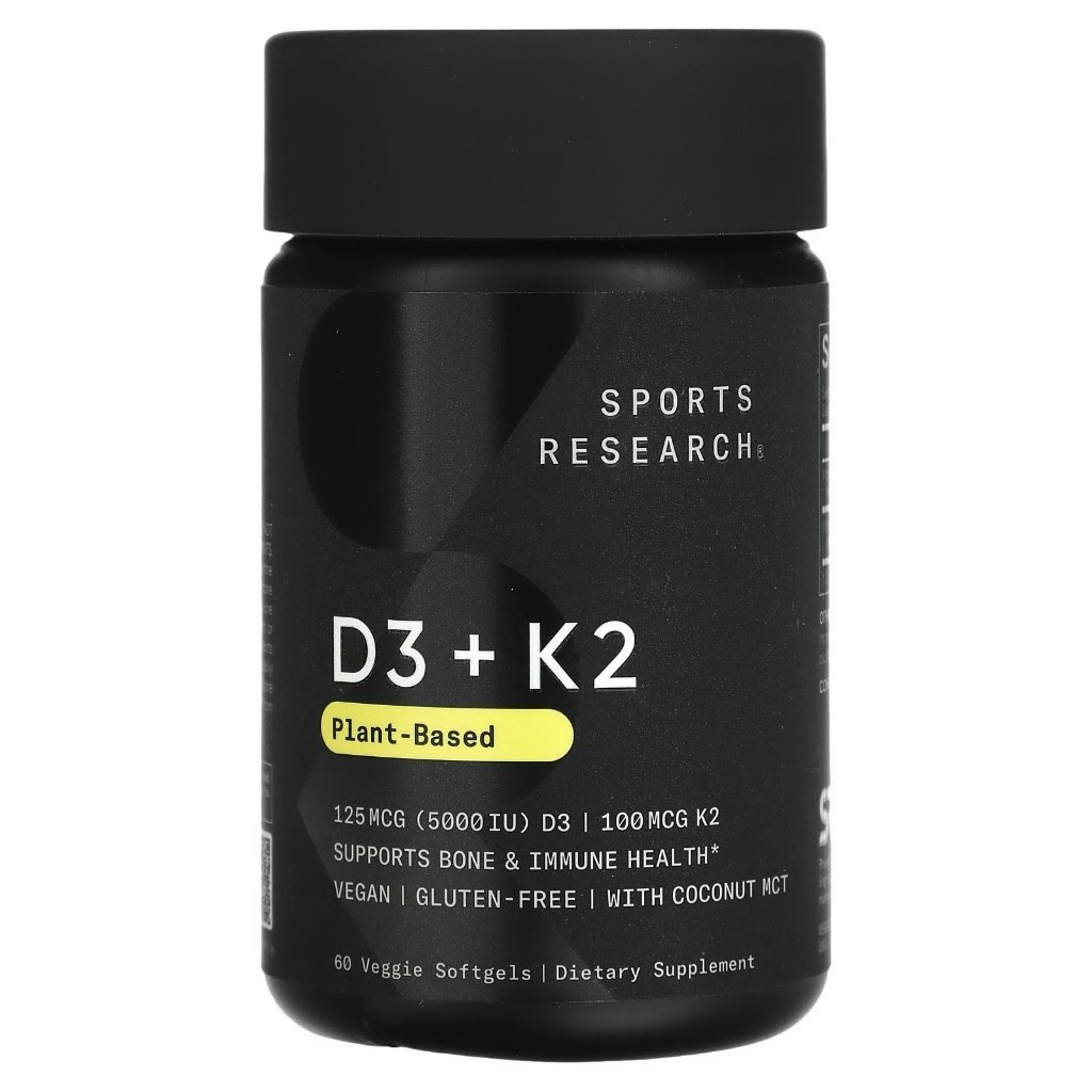 Sports Research, Vitamin D3 + K2, Plant Based, 60 / 120 Veggie Softgels (for immunity)