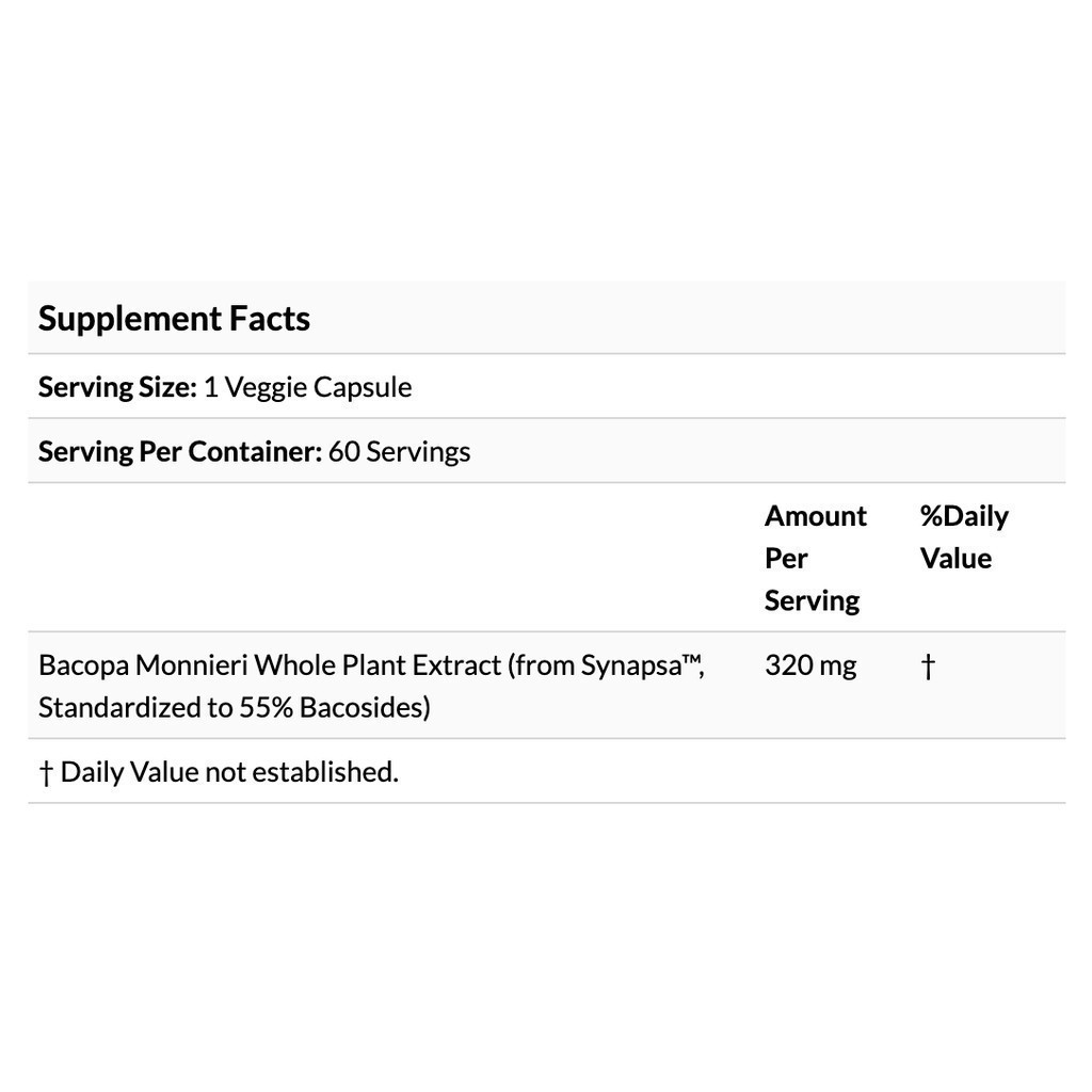 Bacopa with Synapsa 320mg, 60 Veggie Caps, Enhance Memory & Mental Performance, 100% Vegetarian