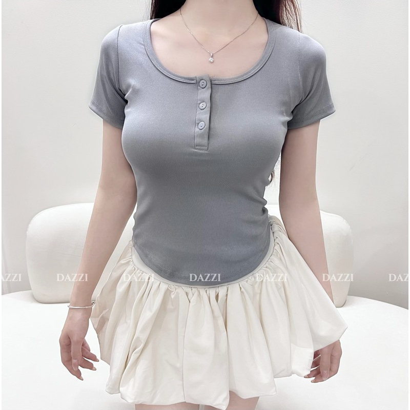 DAZZI BRAND square neck t-shirt with elastic buttons, body-hugging women's t-shirt, figure-flattering babytee t-shirt A03
