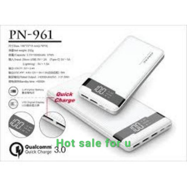 Original Pineng PN 961 Qualcomm, Quick Charge 3.0 Power Bank 10000MAH 💕