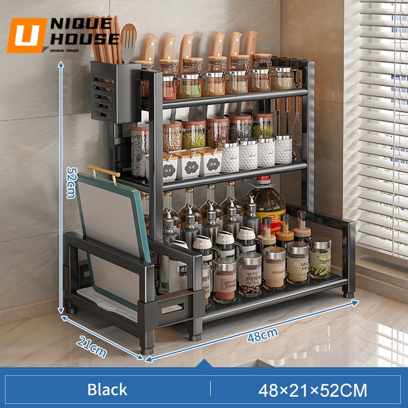 Rak Dapur Spice Rack Rak Rempah Ratus Dapur Kitchen Organizer Rak Rempah Multi-layer Kitchen Rack Rak Serbaguna