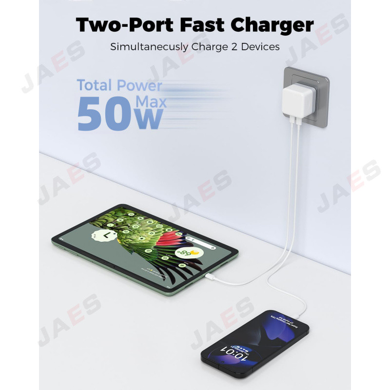 50W Dual USB C Fast Charger【MY Stock】Compatible 17 16 15 14 13 12 11 Pad Tablets 40W Dynamic Power Adapter Type C Fast Charging Head & Cable For Samsung Phone Charger