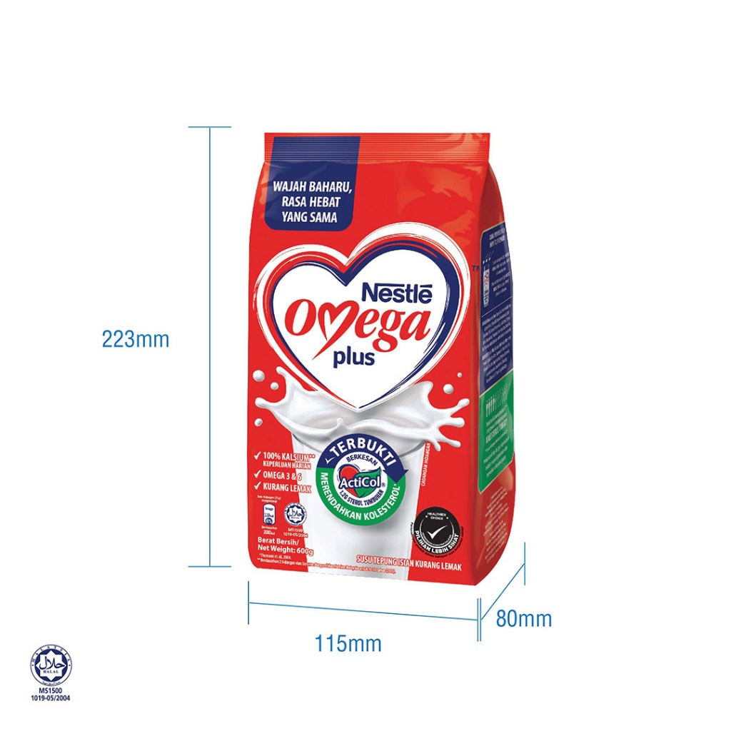 Nestle Omega Plus Plain Reduced Fat Adult Milk Powder (600g)