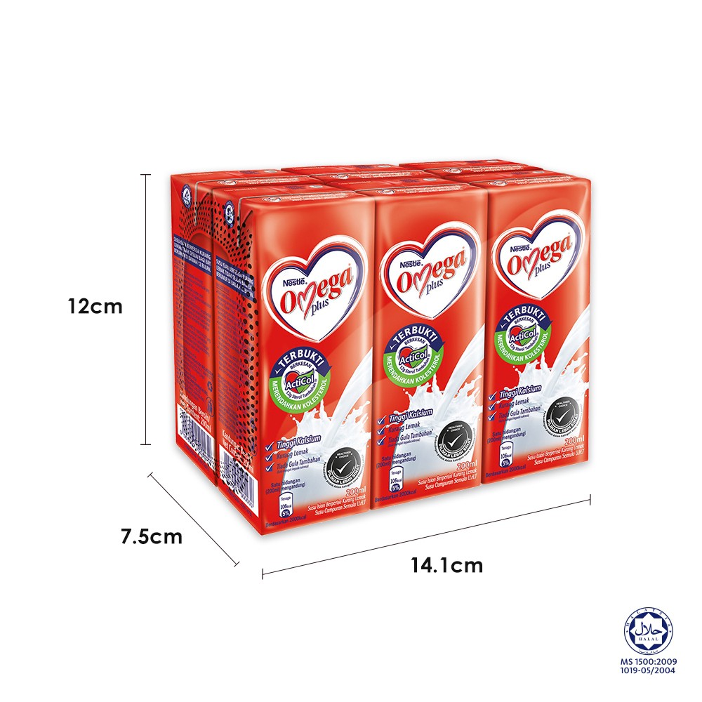 [Carton of 24] NESTLE Omega Plus UHT Plain Milk 200ml (Halal)