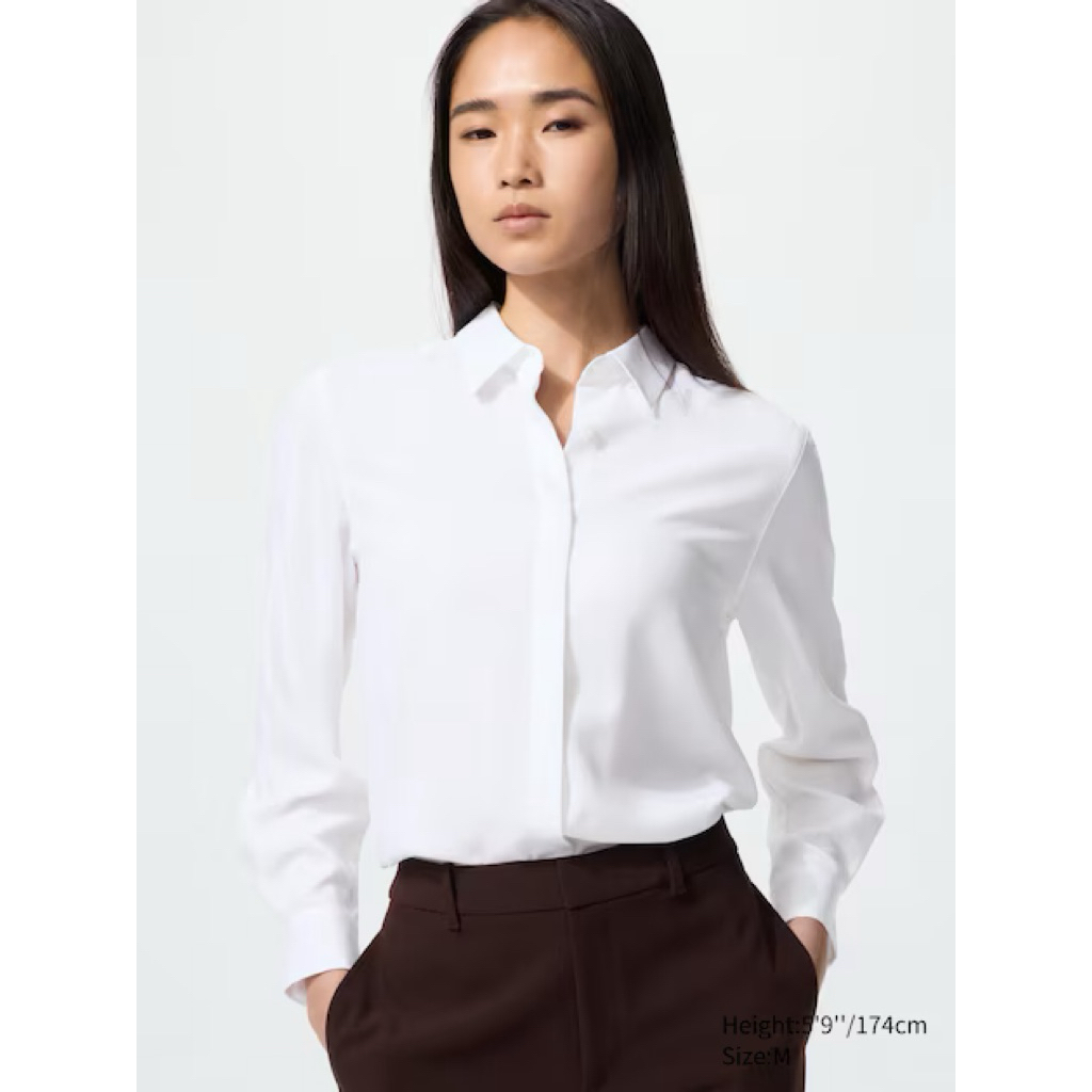KEMEJA UNIQLO ORIGINAL Plain Striped Long Sleeve Rayon Blouse Shirt