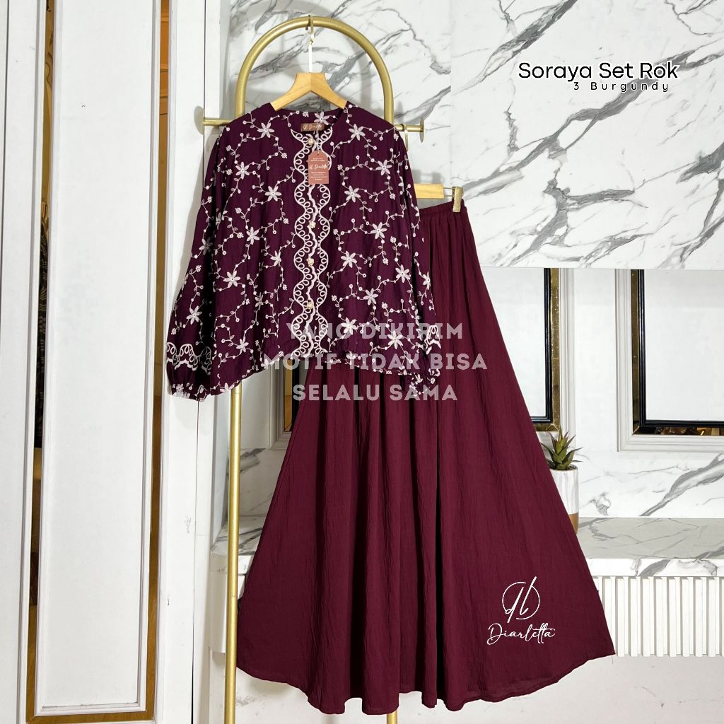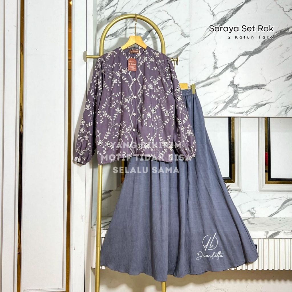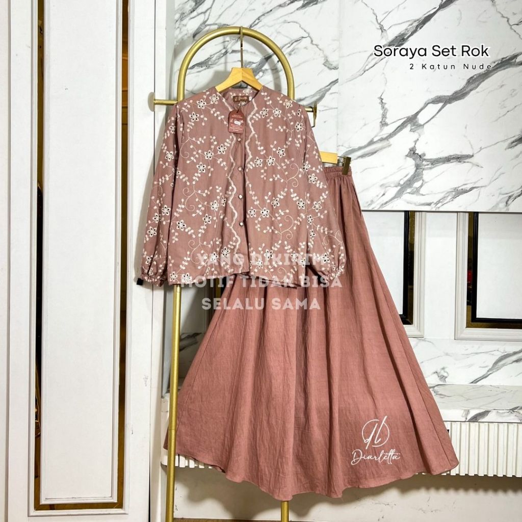 Raya Series - Soraya Nursing Friendly Skirt Set Premium Embroidery LinenPOLO One Set Umbrella Katbol By Diarletta