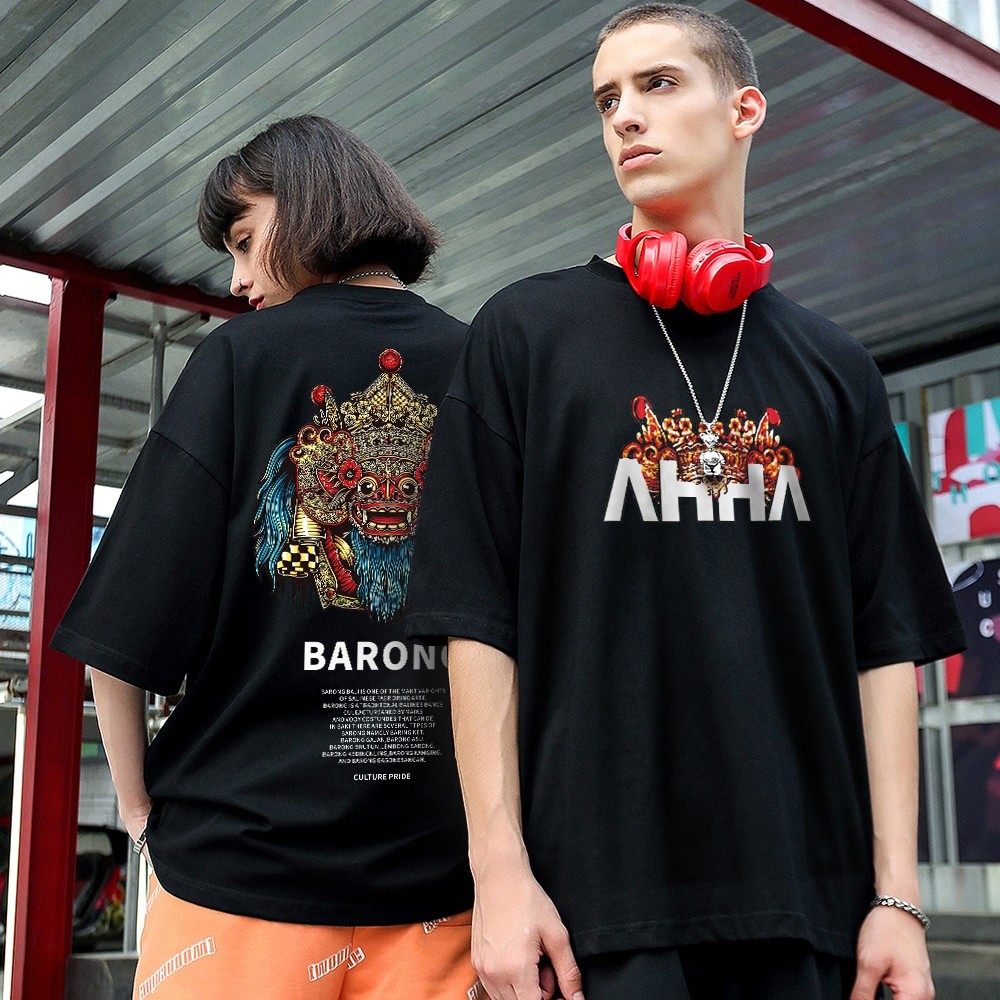 baju Ahha Gang Barong Black Distro T-Shirt Fashion Casual Cotton Short Sleeve Tee Tops for Men Women S-5XL