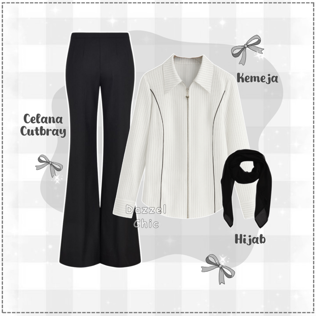 KEMEJA DazzelChic Casual Dyffa Zipper Shirt Stripe 3in1 Set Korean Style (Bella Square + Shirt + celana cutbray) Classy Modern Suit - SET AB602