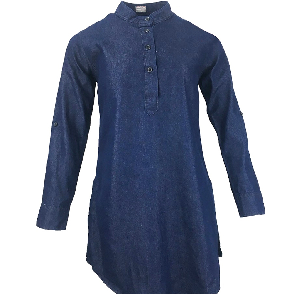 Denim Blouse Muslimah Denim Material Wanita Baju Clothing Half Button